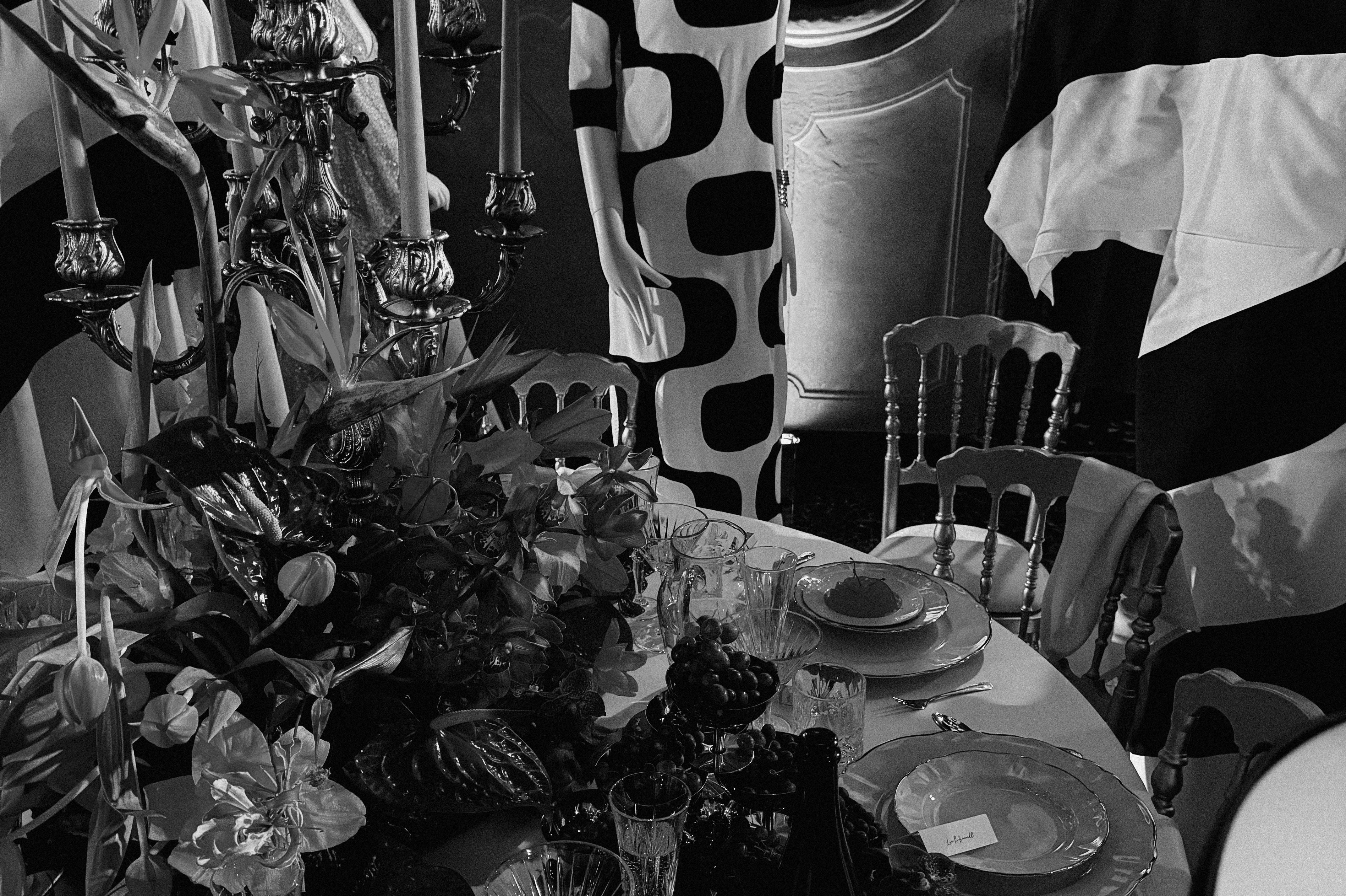 For Spring Summer 2026, Taller Marmo takes inspiration from three of the most legendary masquerade balls of the 20th century: Carlos de Beistegui’s Le Bal Oriental (1951), Truman Capote’s Black and White Ball (1966), and Marie-Hélène de Rothschild’s Surrealist Ball (1972).