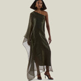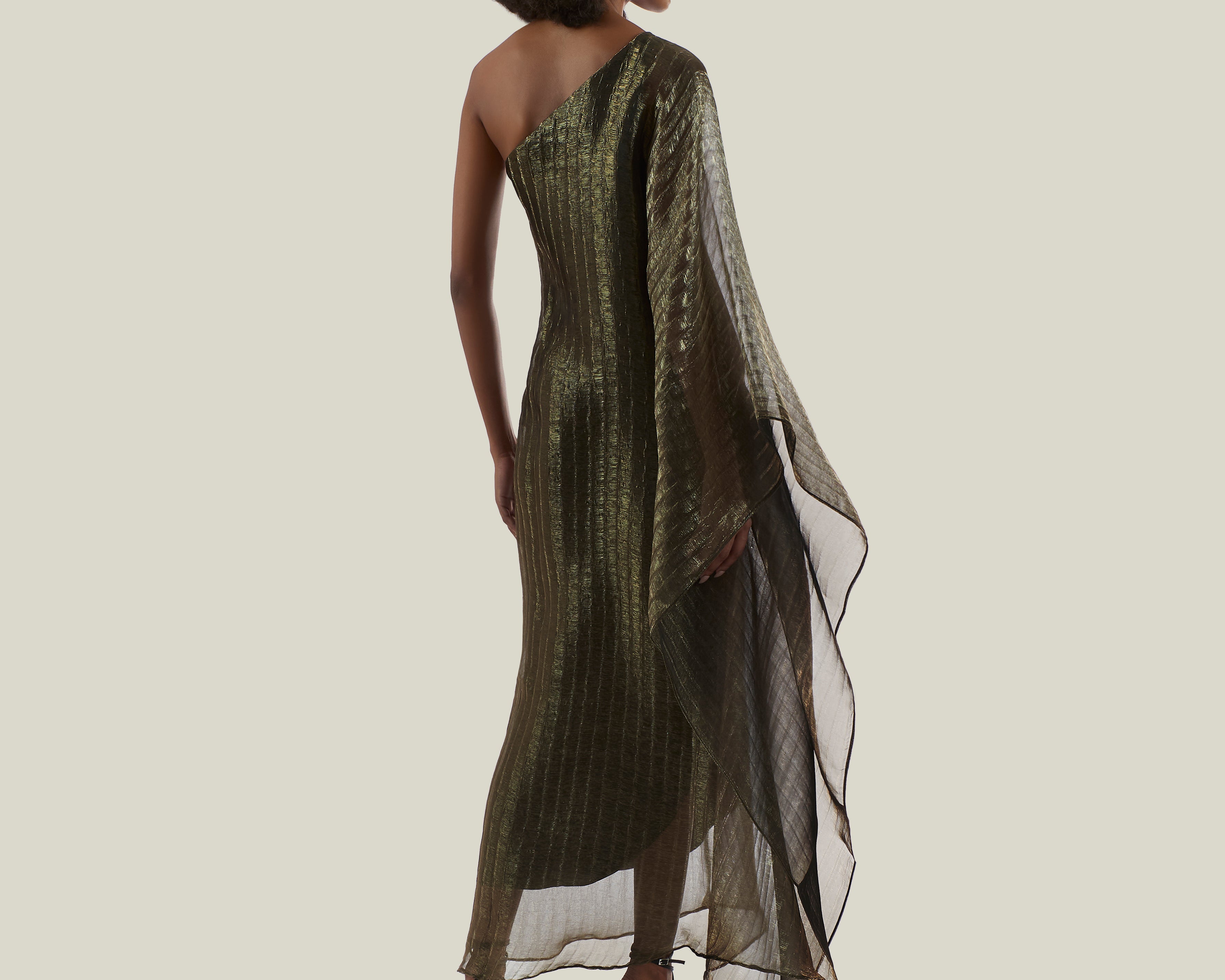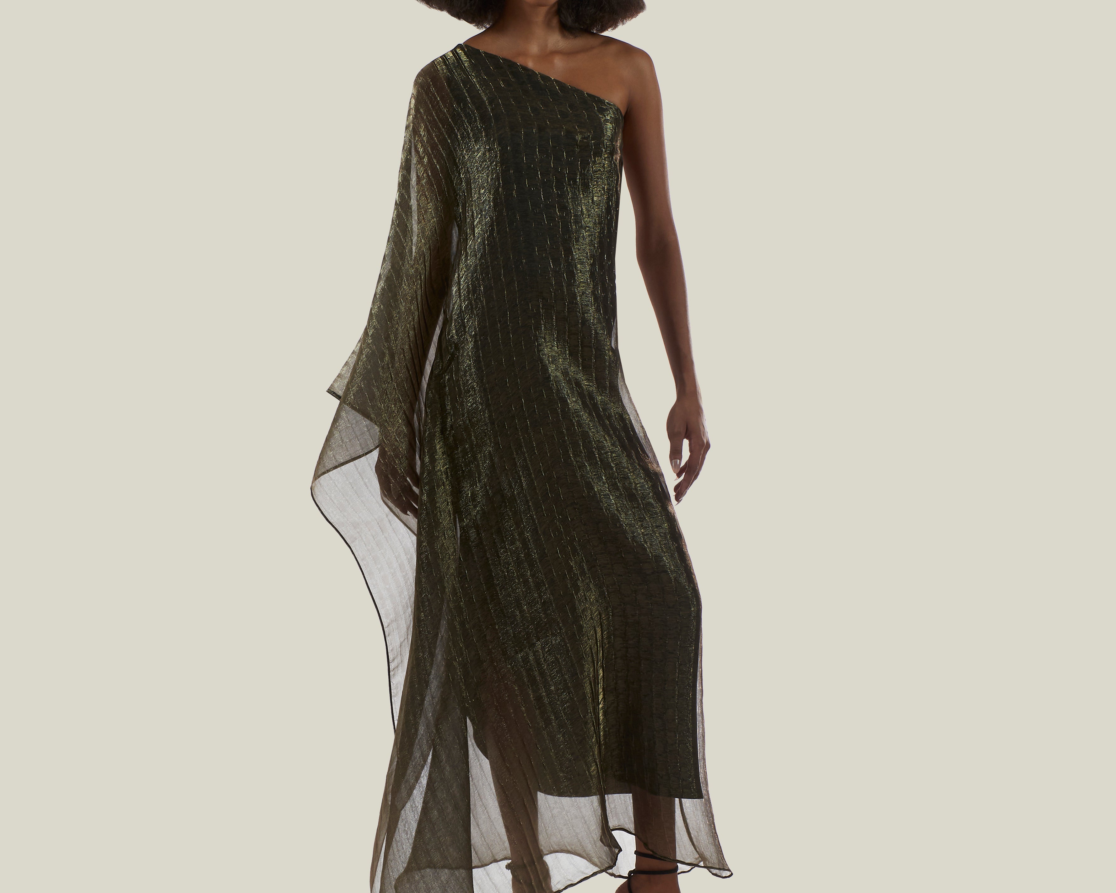 Named after the iconic socialite, the Betsy is a minimal yet regal one-shoulder dress crafted from the softest fil coupé textile made in Como, Italy. The hems feature a satin finish that adds to its elegance.