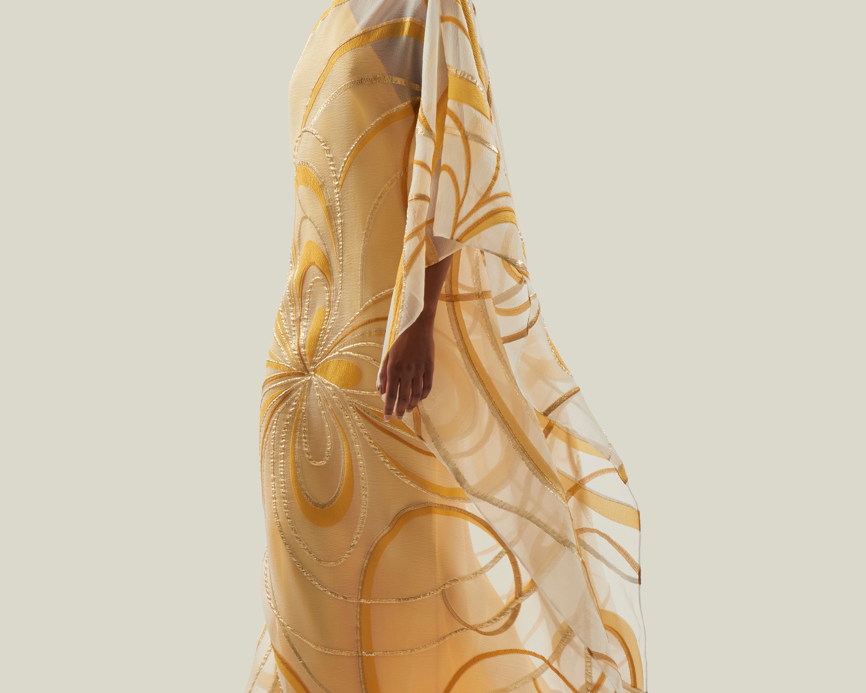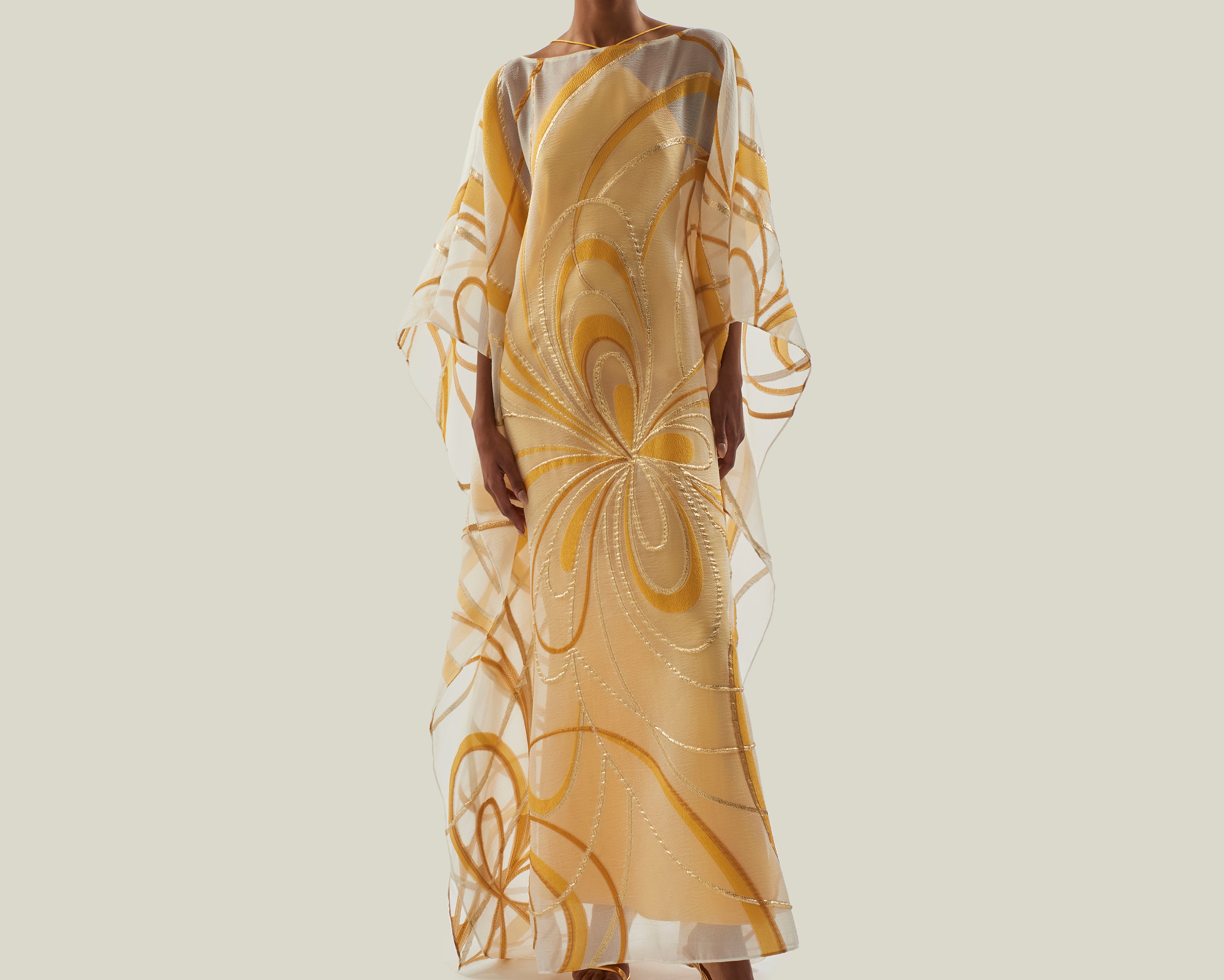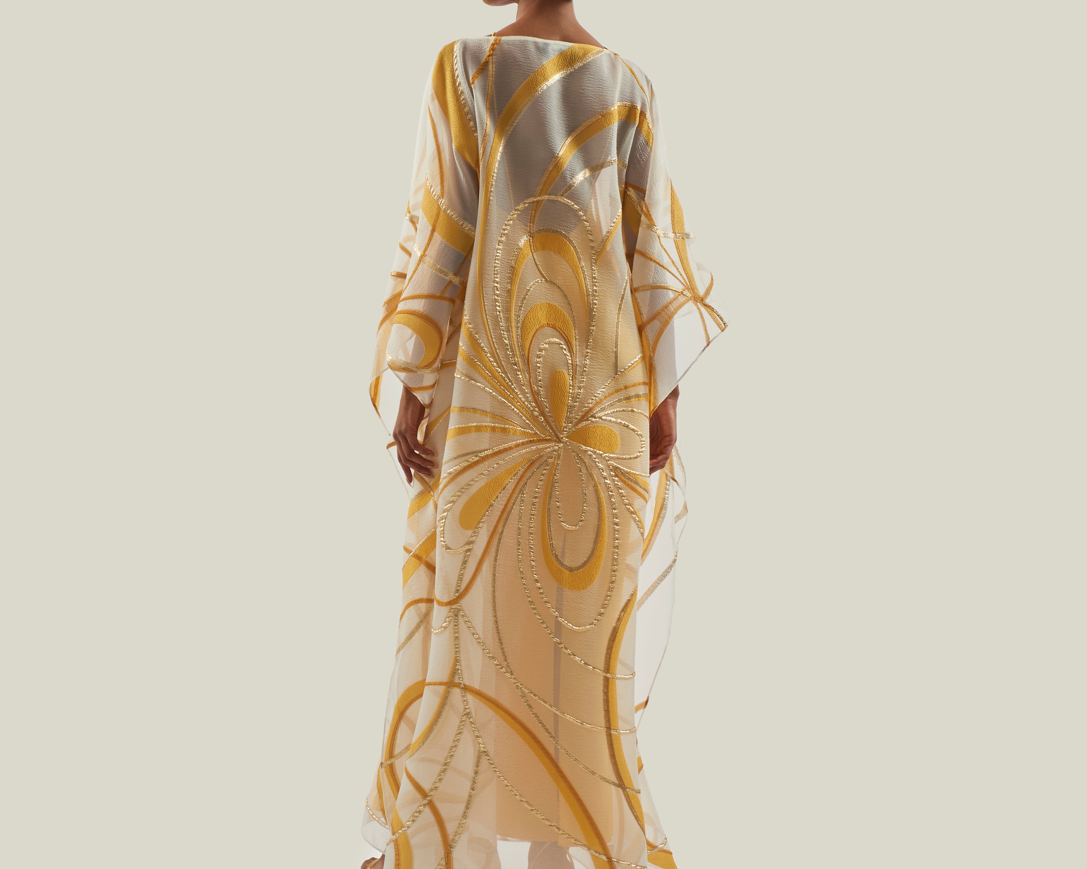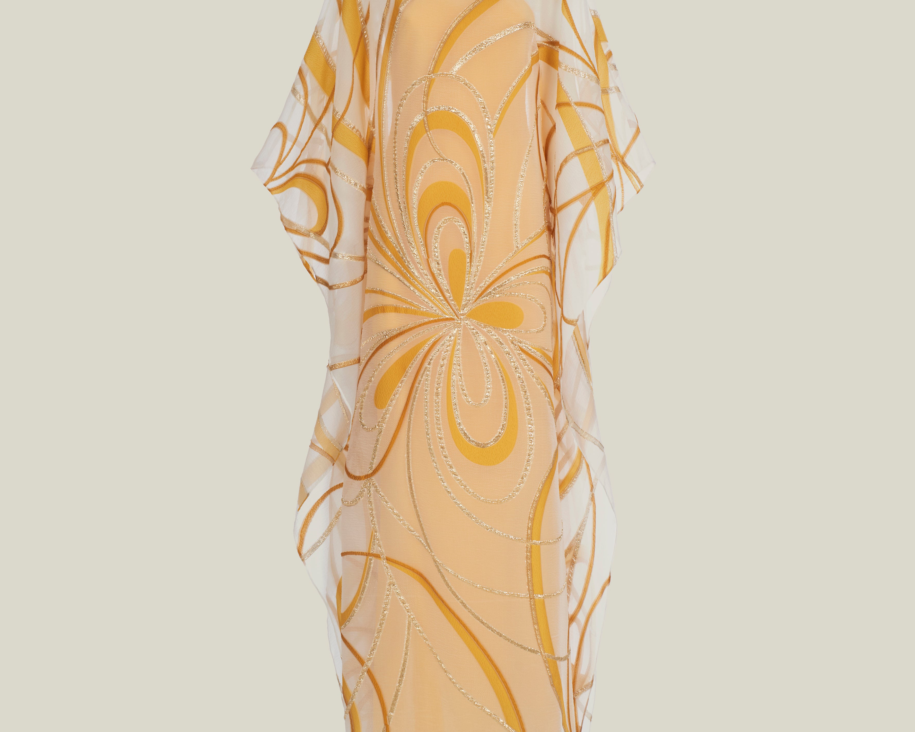 Fil coupé lurex kaftan with dettached crepe cady slip dress