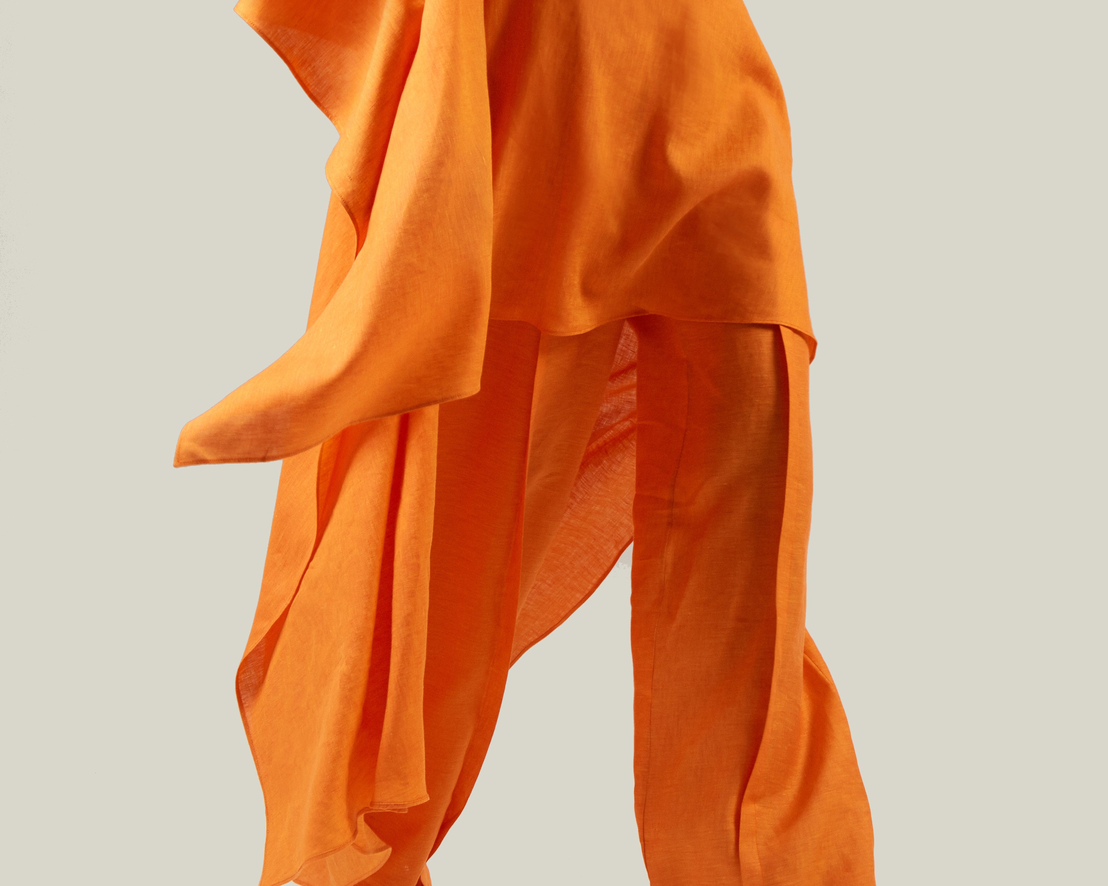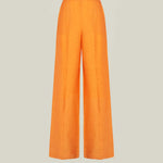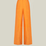 The Colorado is a pair of high-waist palazzo pants crafted from linen, designed especially for warm summer days. The lightweight fabric keeps the silhouette airy and comfortable, while an elegant front pleat recalls the timeless tailoring of men’s trousers. The self-fabric button on the side gracefully fastens the pants. Pair it with the Columbia Kaftan for a perfectly coordinated set, ideal for warm summer nights.