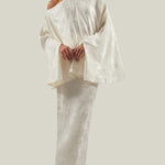 Toile-de-Jouy jacquard off-the-shoulder blousson column dress