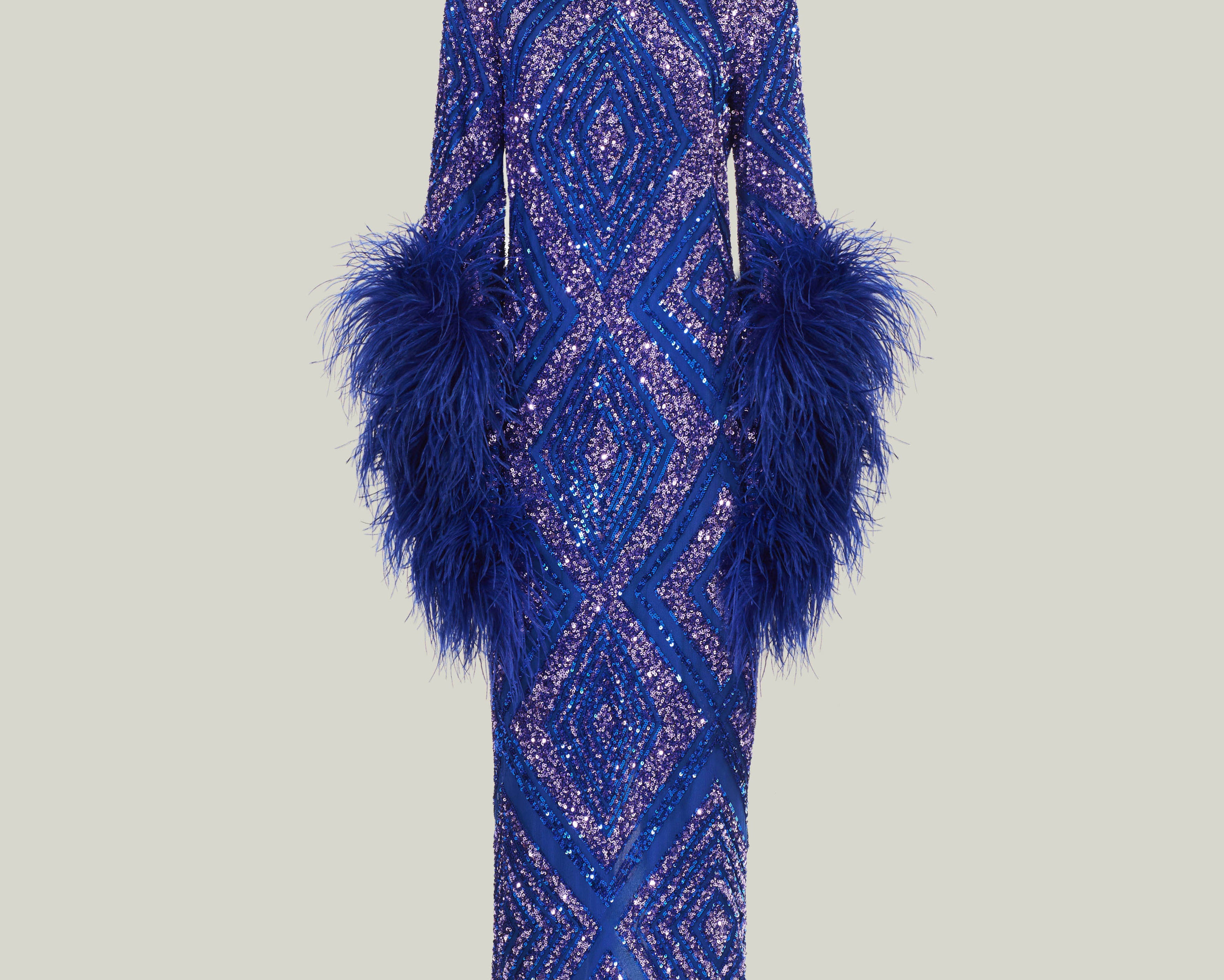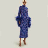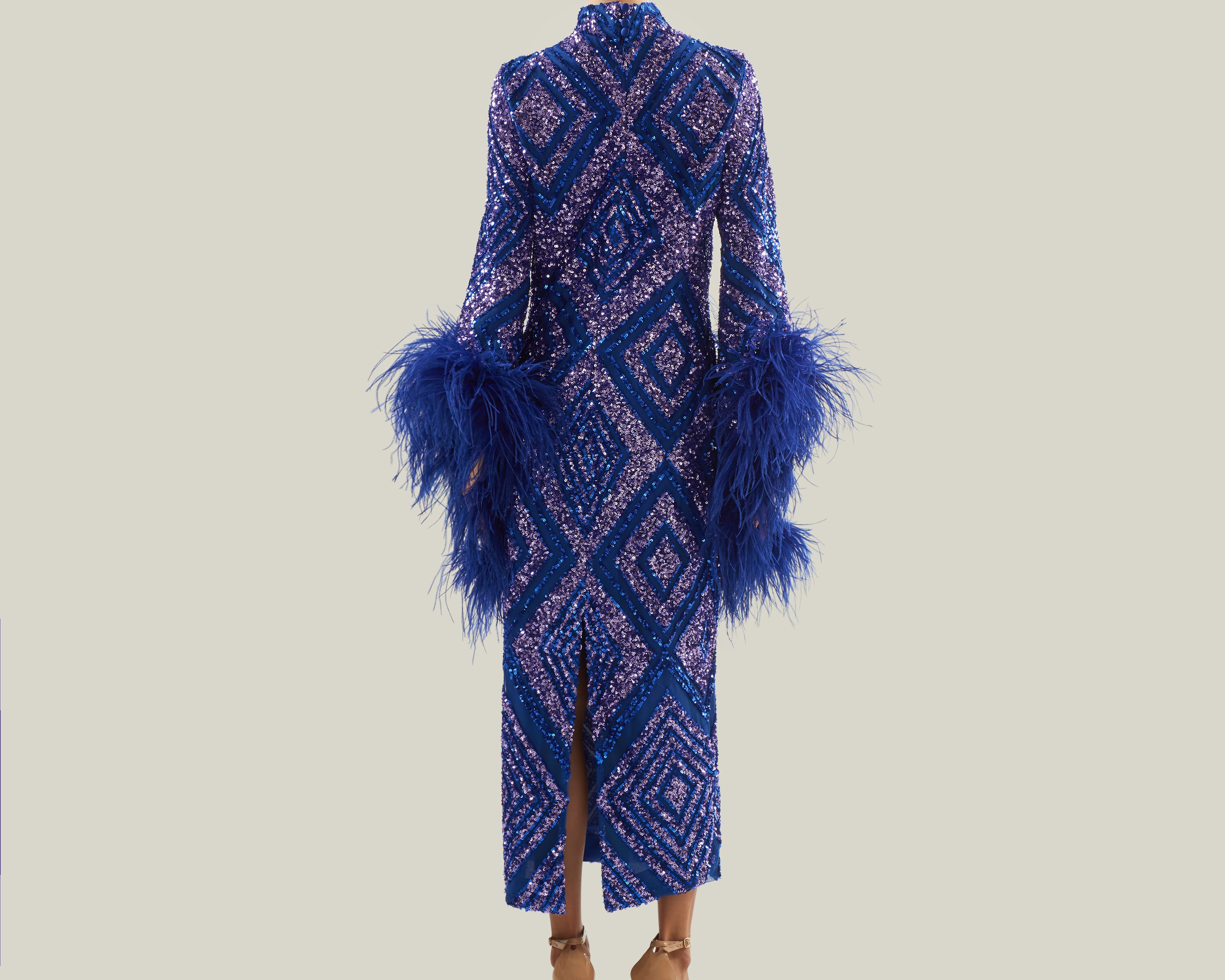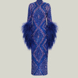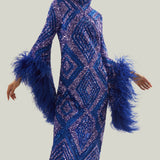 Sequined feathered long dress