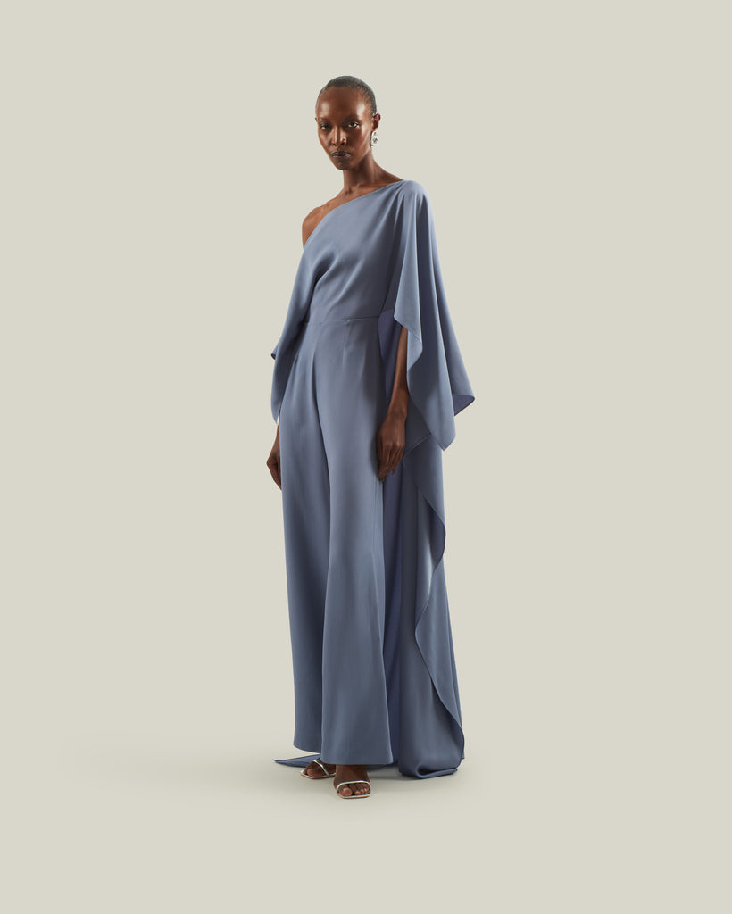 Who needs a cape-dress when you can have a cape-jumpsuit? Named after the blonde supermodel, the Jerry Jumpsuit is made from soft crepe cady and combines the fluidity of palazzo pants with the drama of a cape.