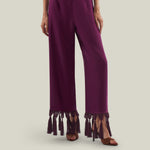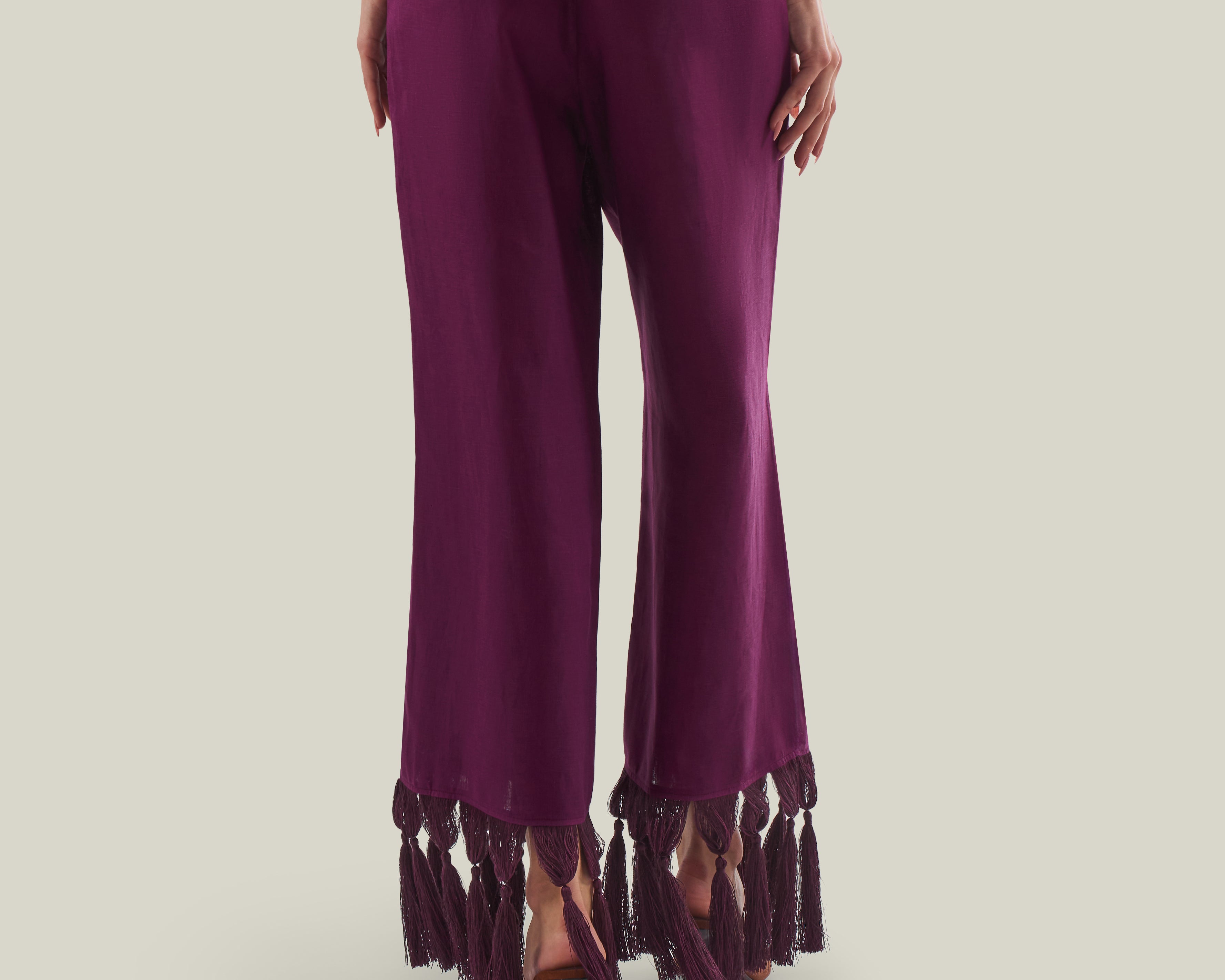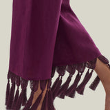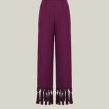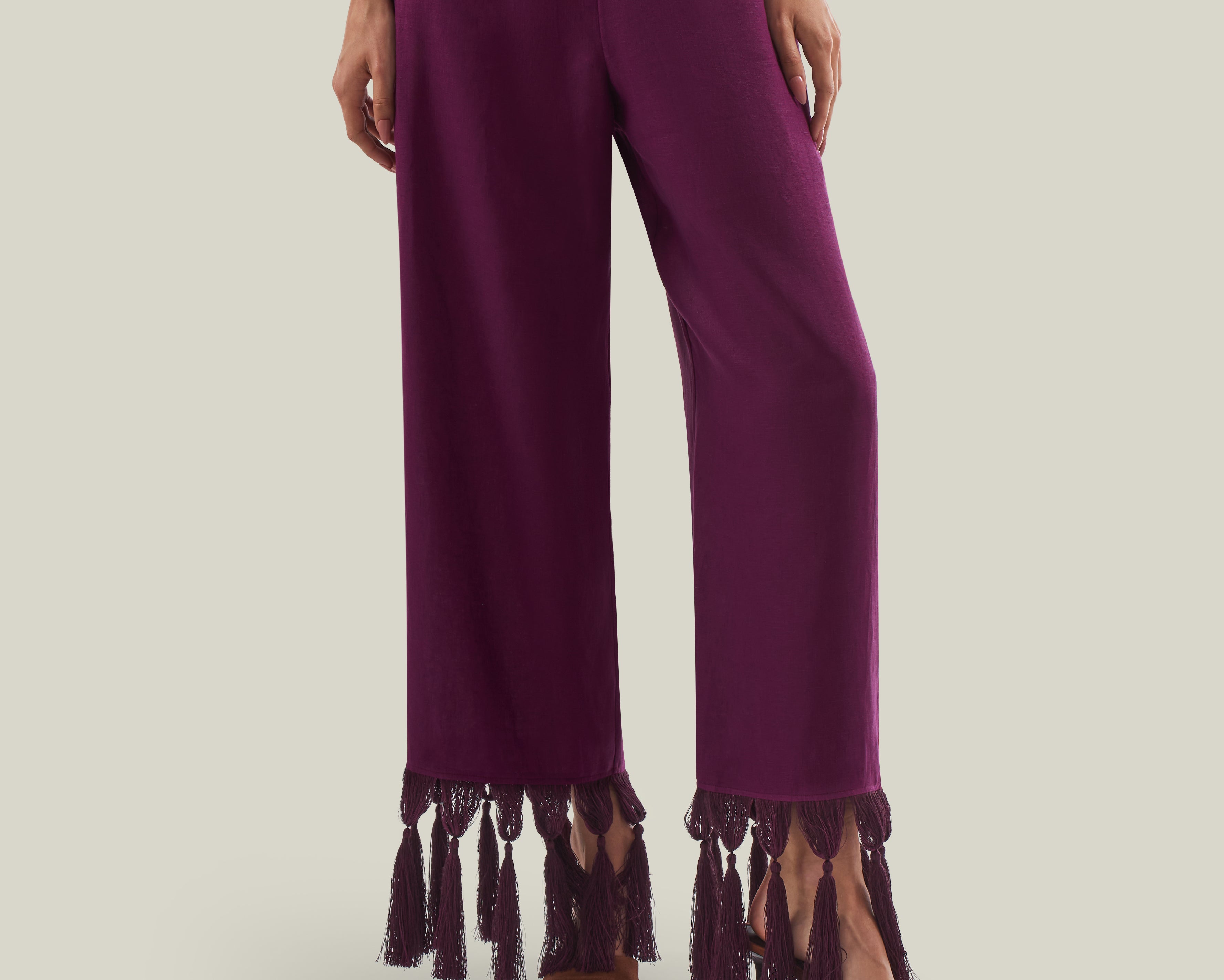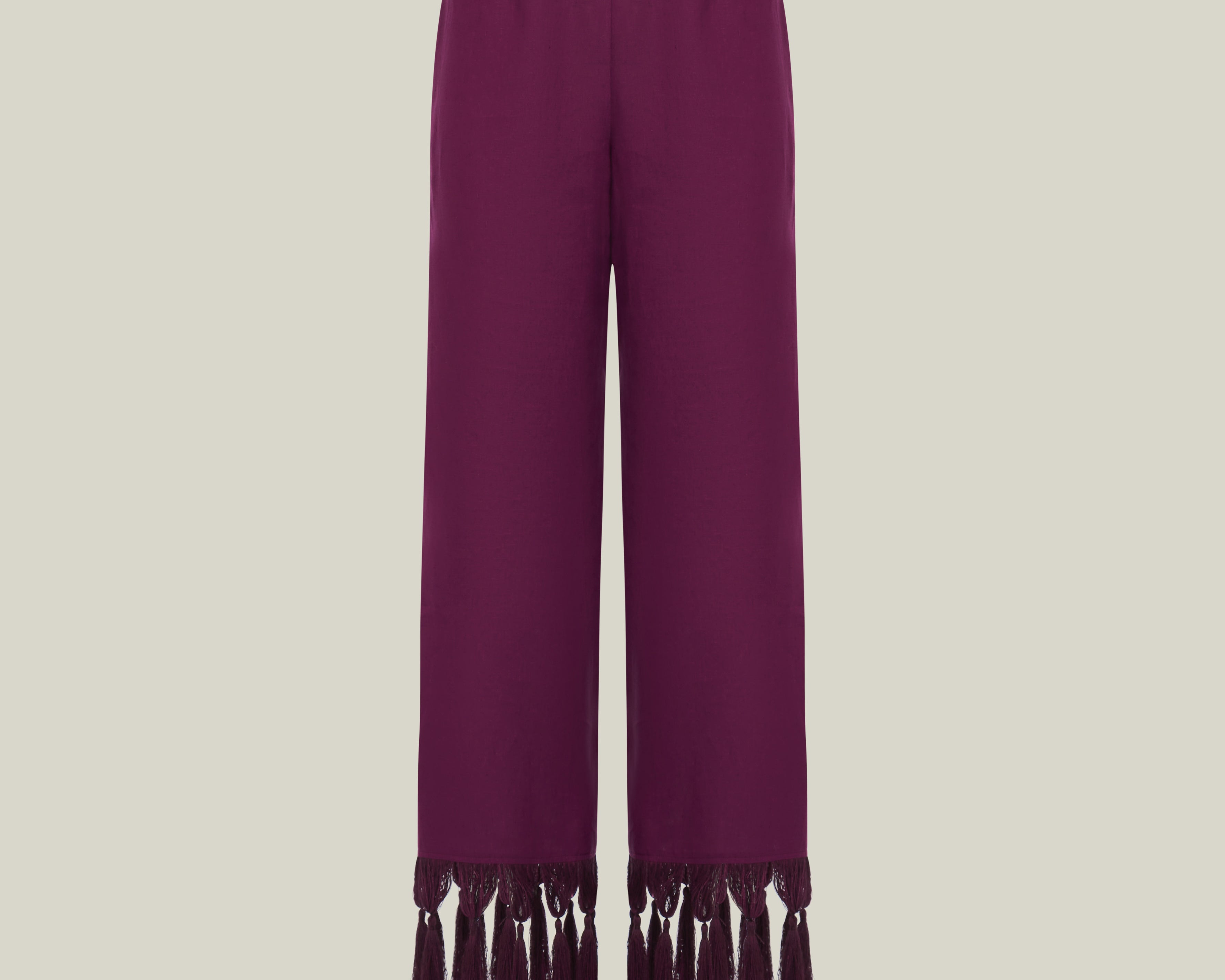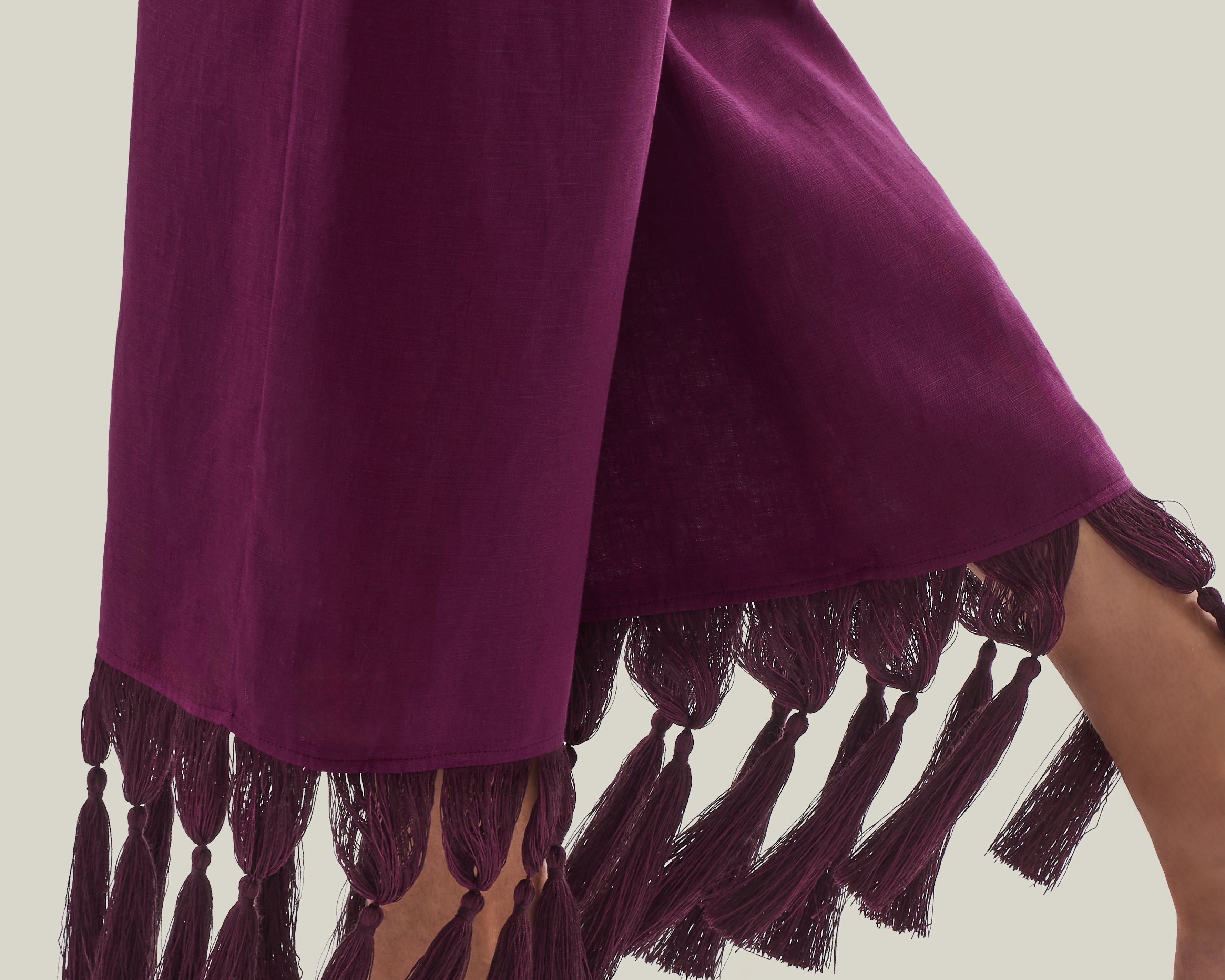 The Marlino are high-waisted palazzo pants made from soft linen. With a cropped ankle-length fit, they feature a fringed hem in a tone-on-tone finish, adding a touch of movement and texture to the design. Pair them with the Gloria Blouse for a complete look that balances elegance and effortless style.