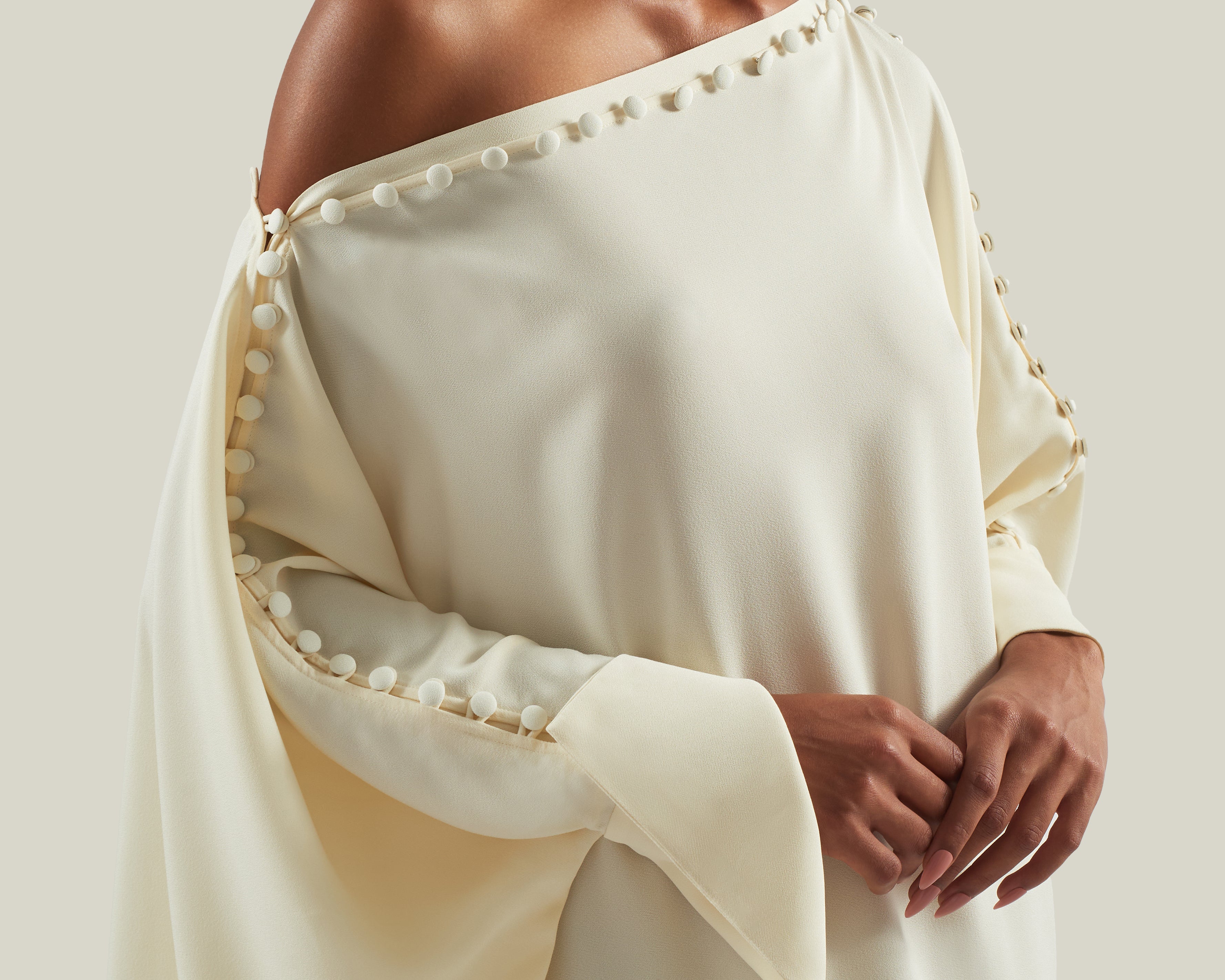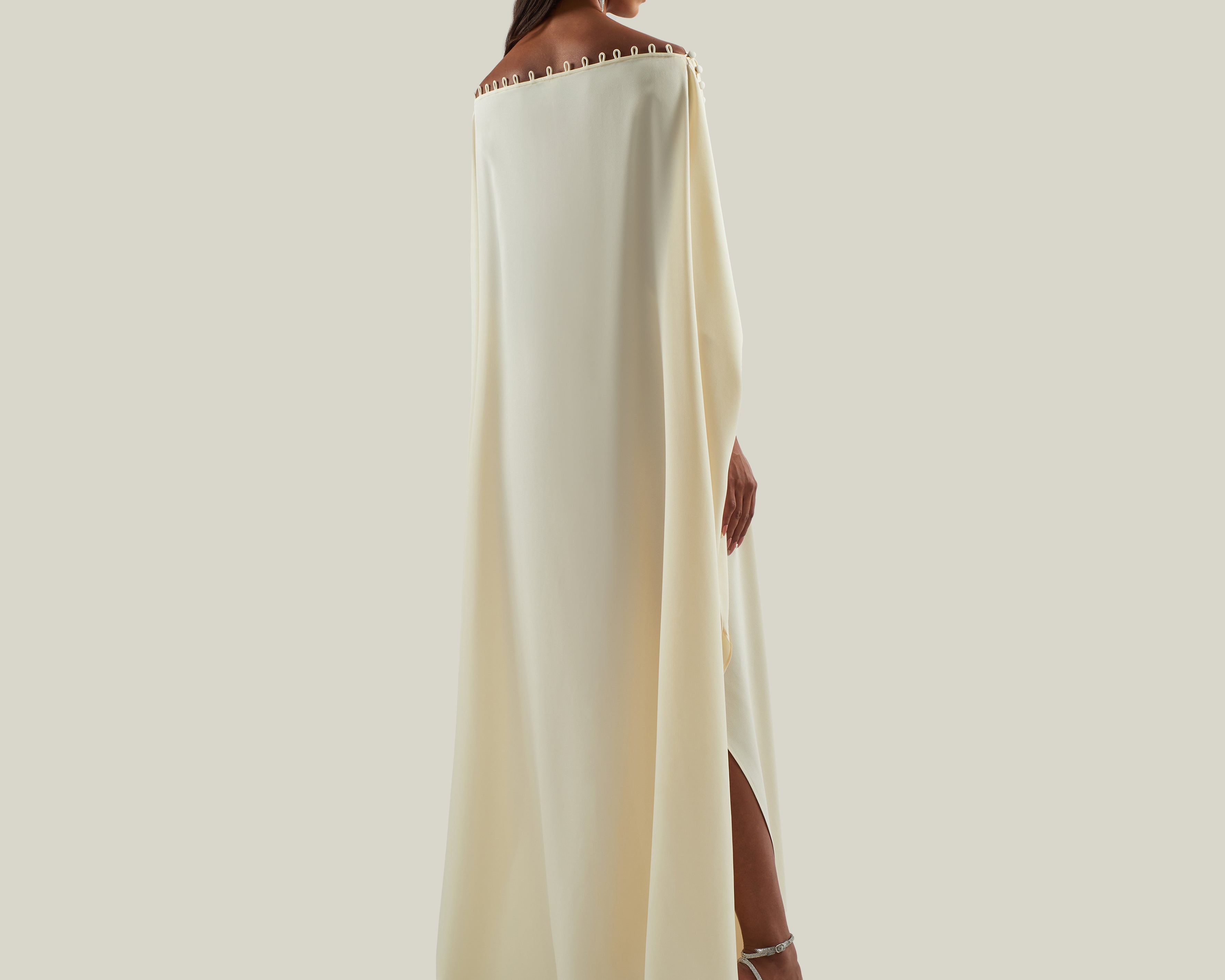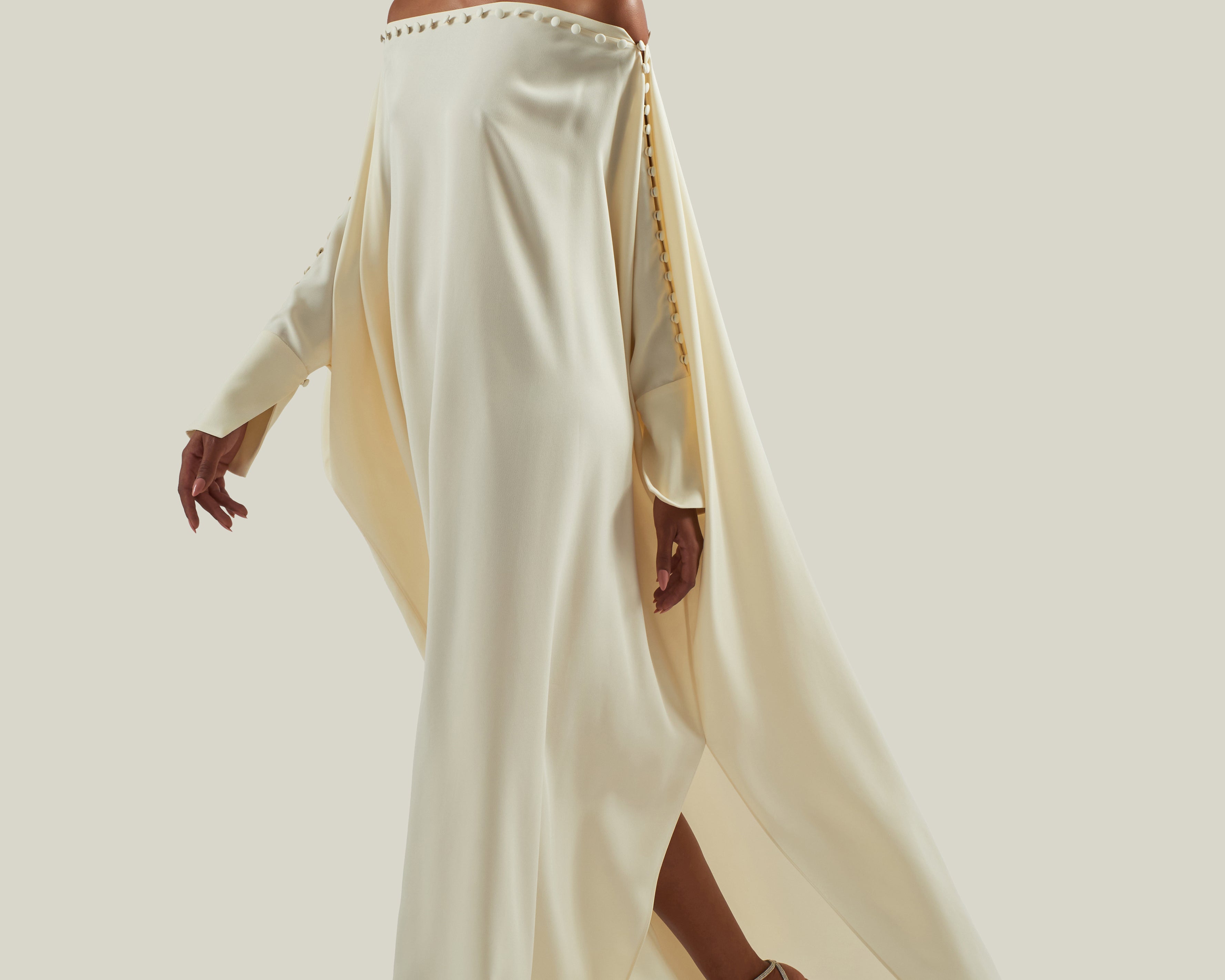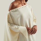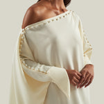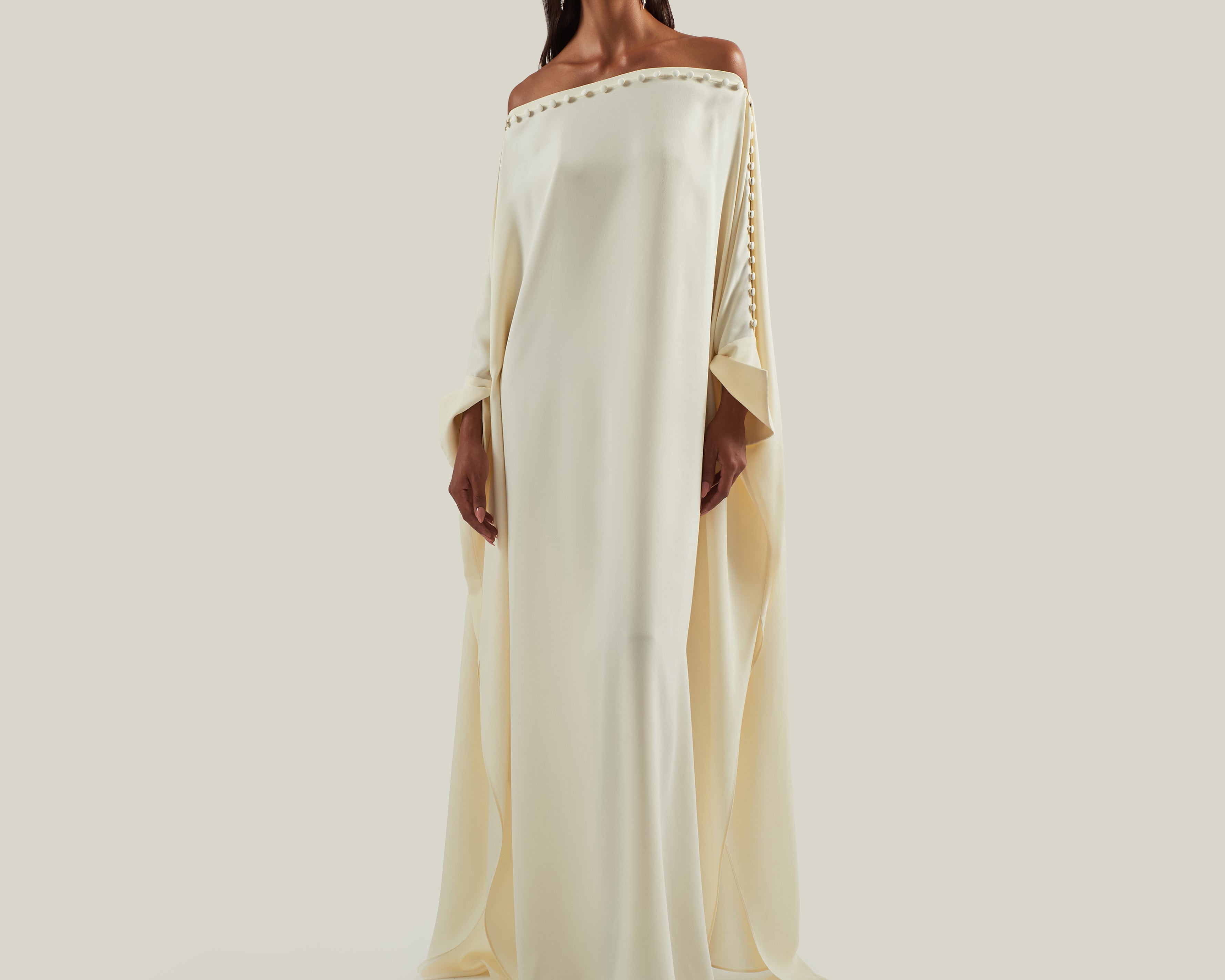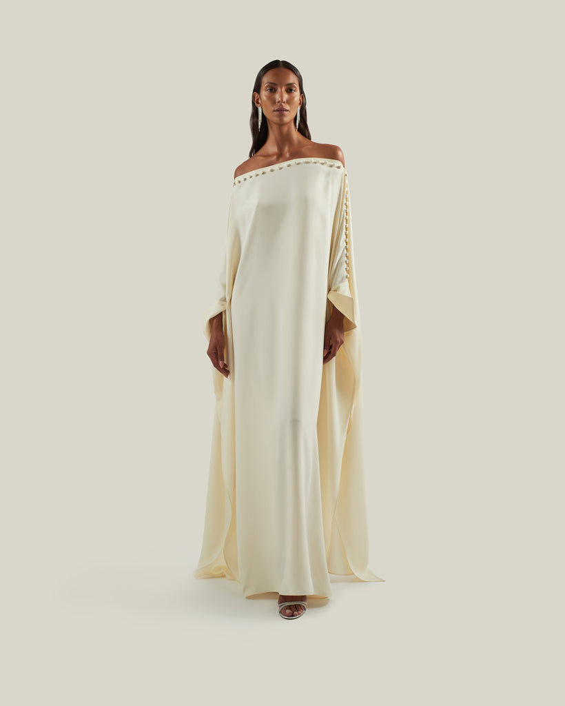 Off-the shoulder buttoned kaftan