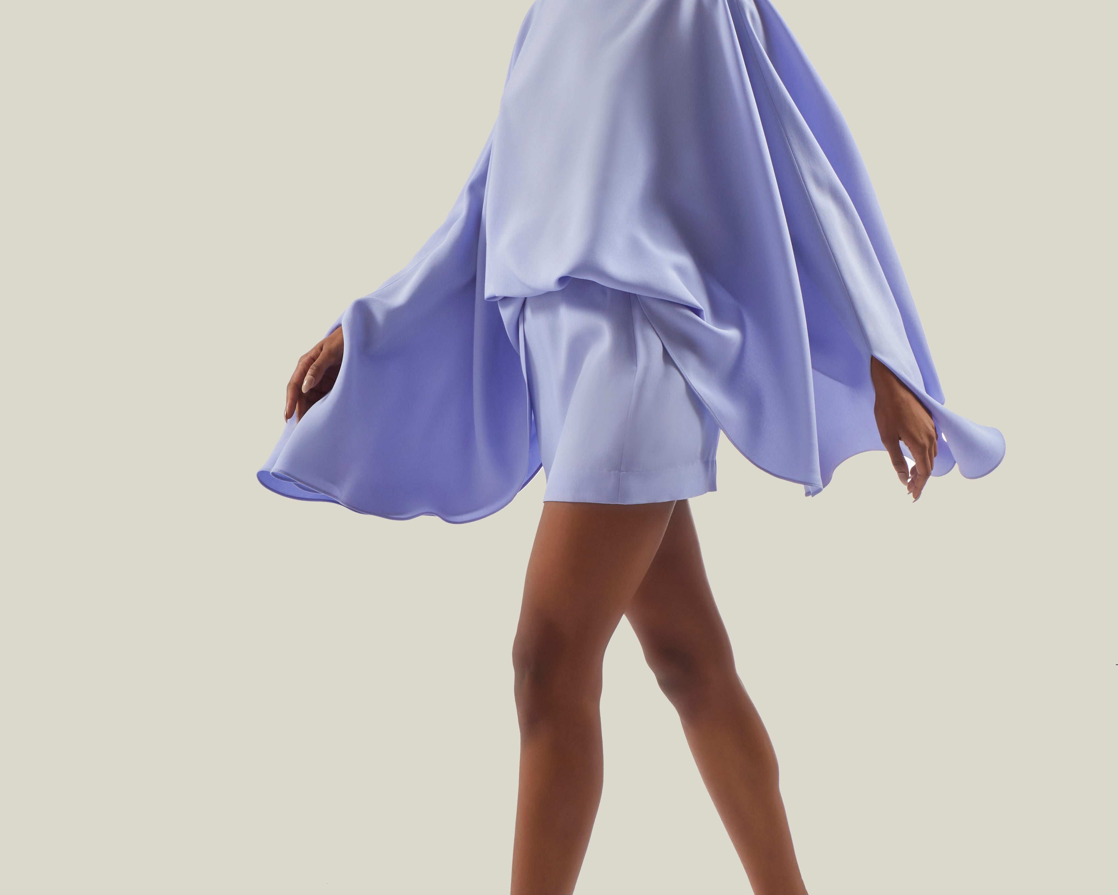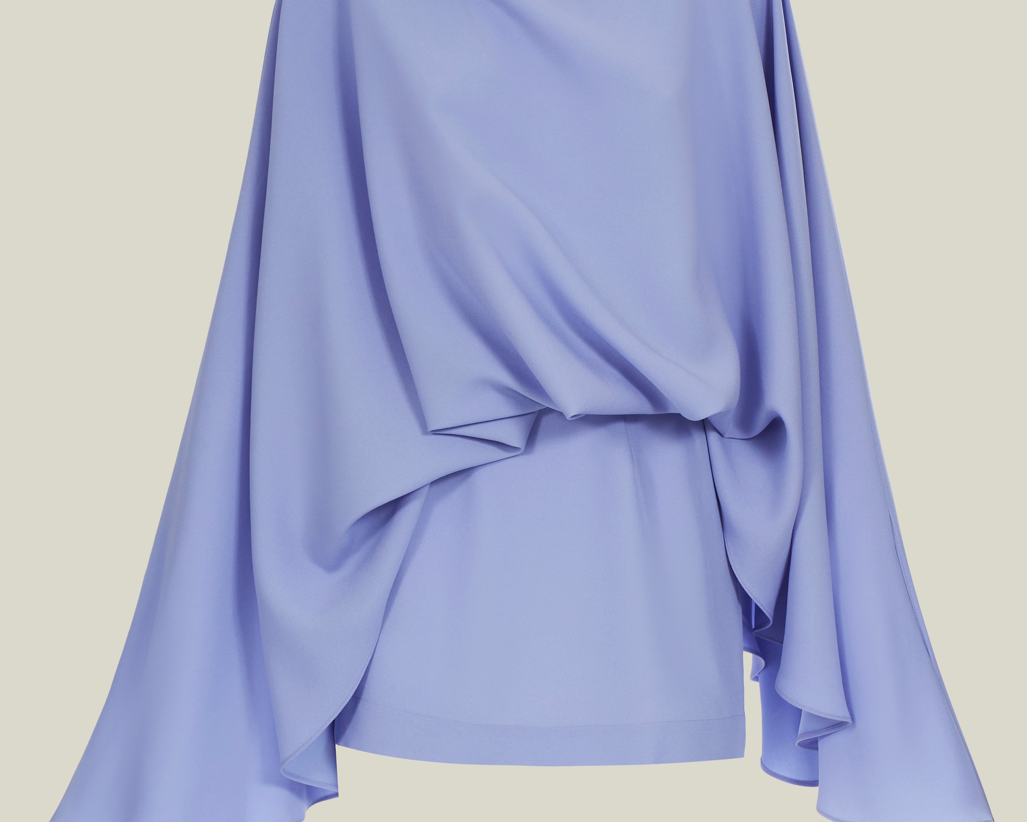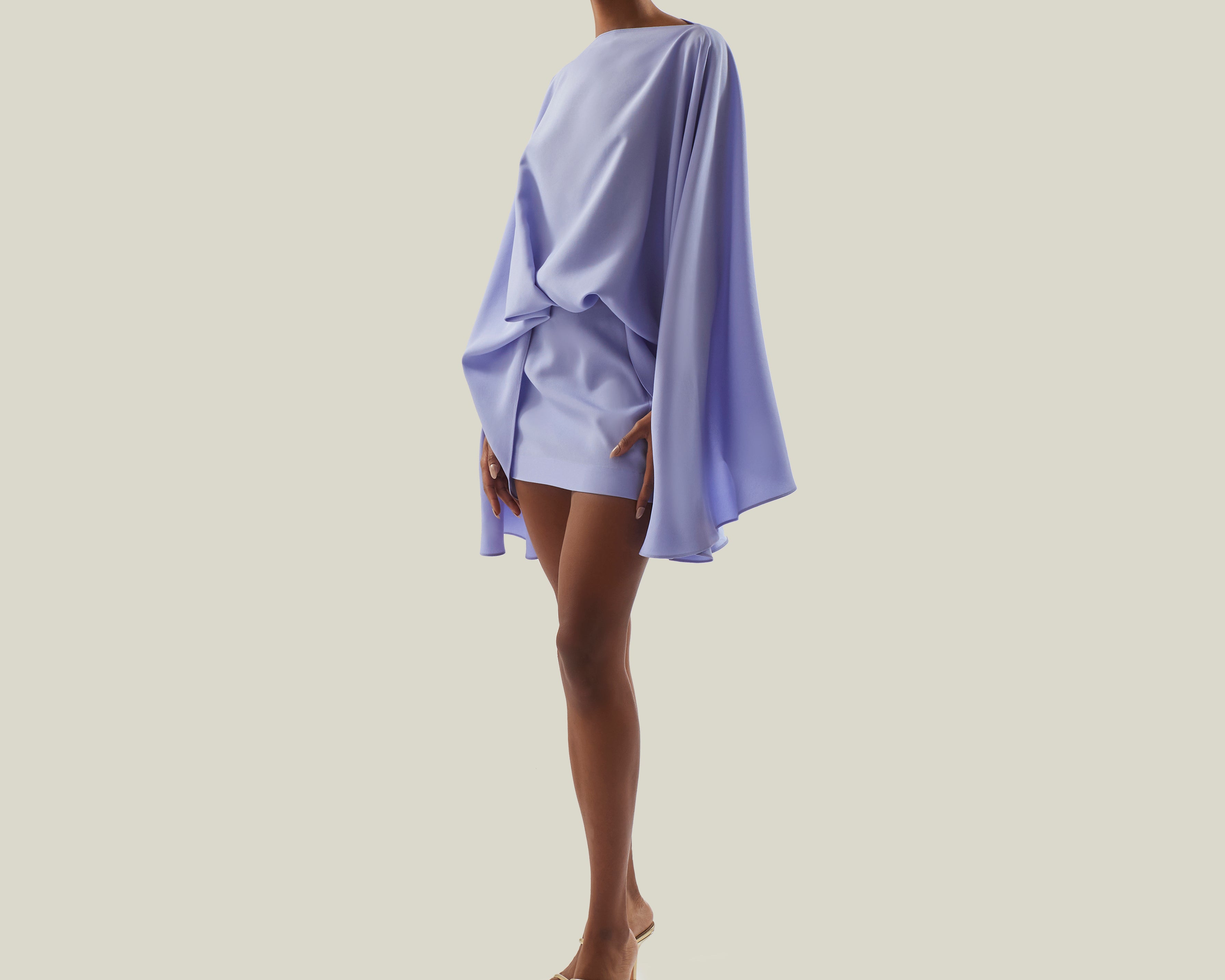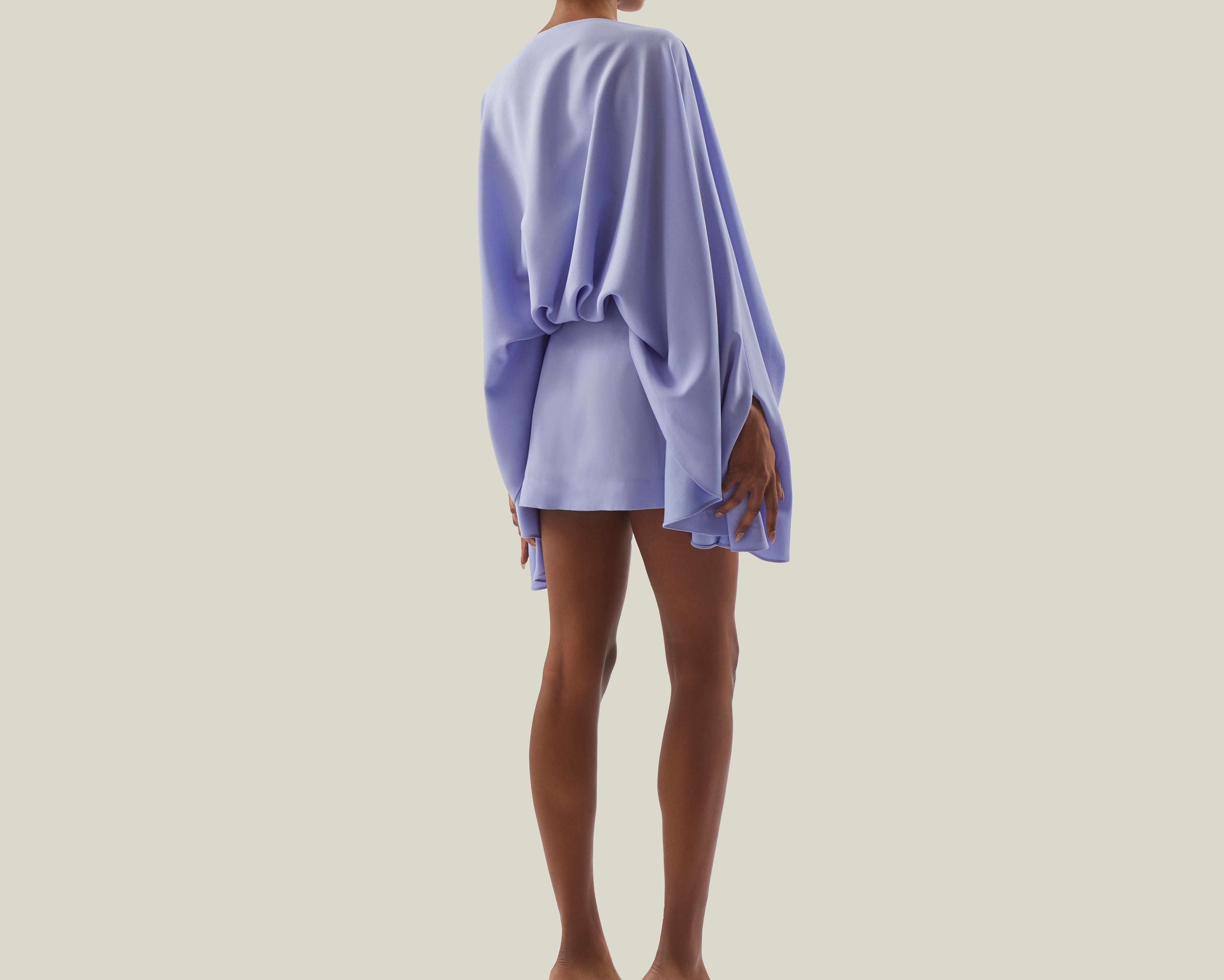 A playful take on our signature Eolia Dress, this mini version is crafted from fluid viscose-blend crepe cady. The design pairs a voluminous blouson top with a sleek mini skirt, creating a striking silhouette that moves with ease.