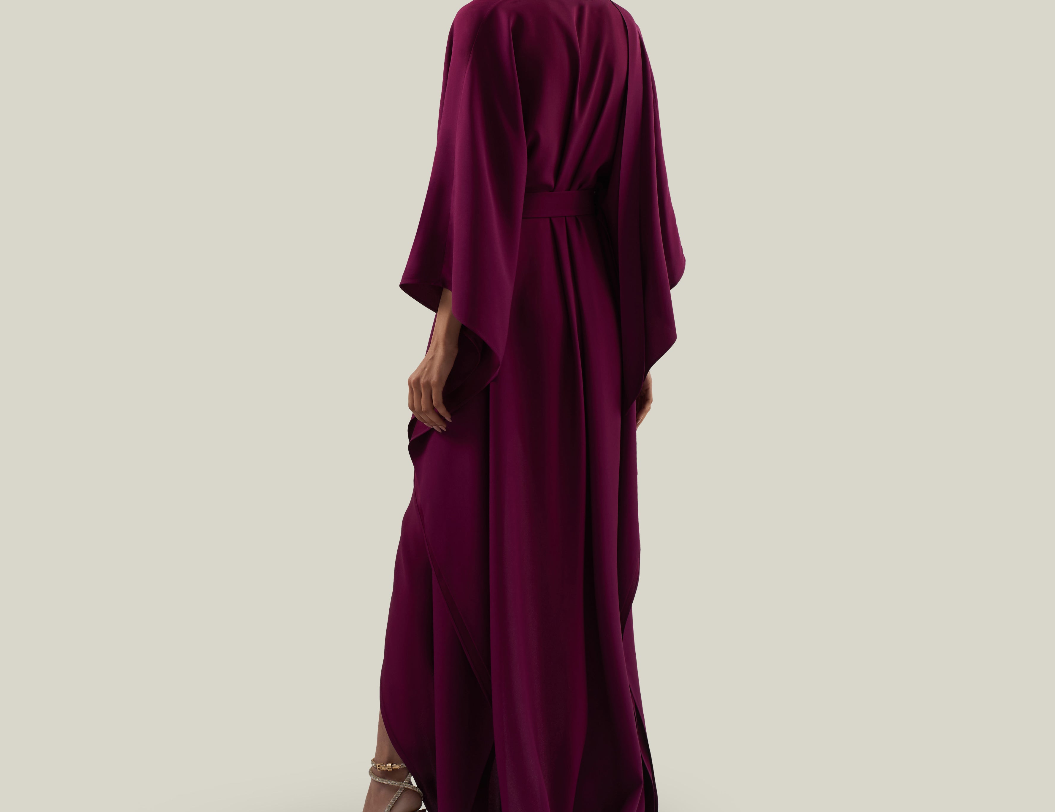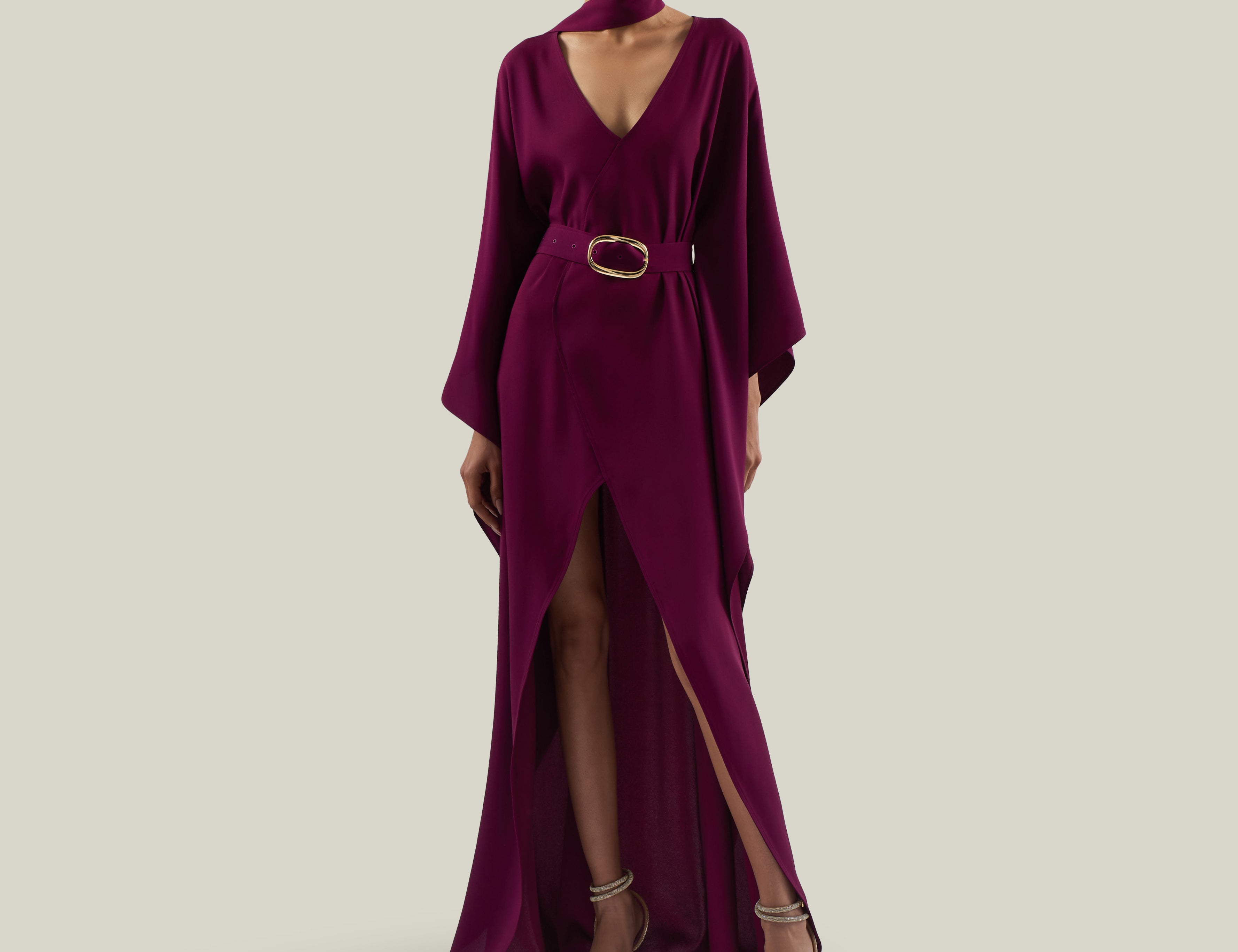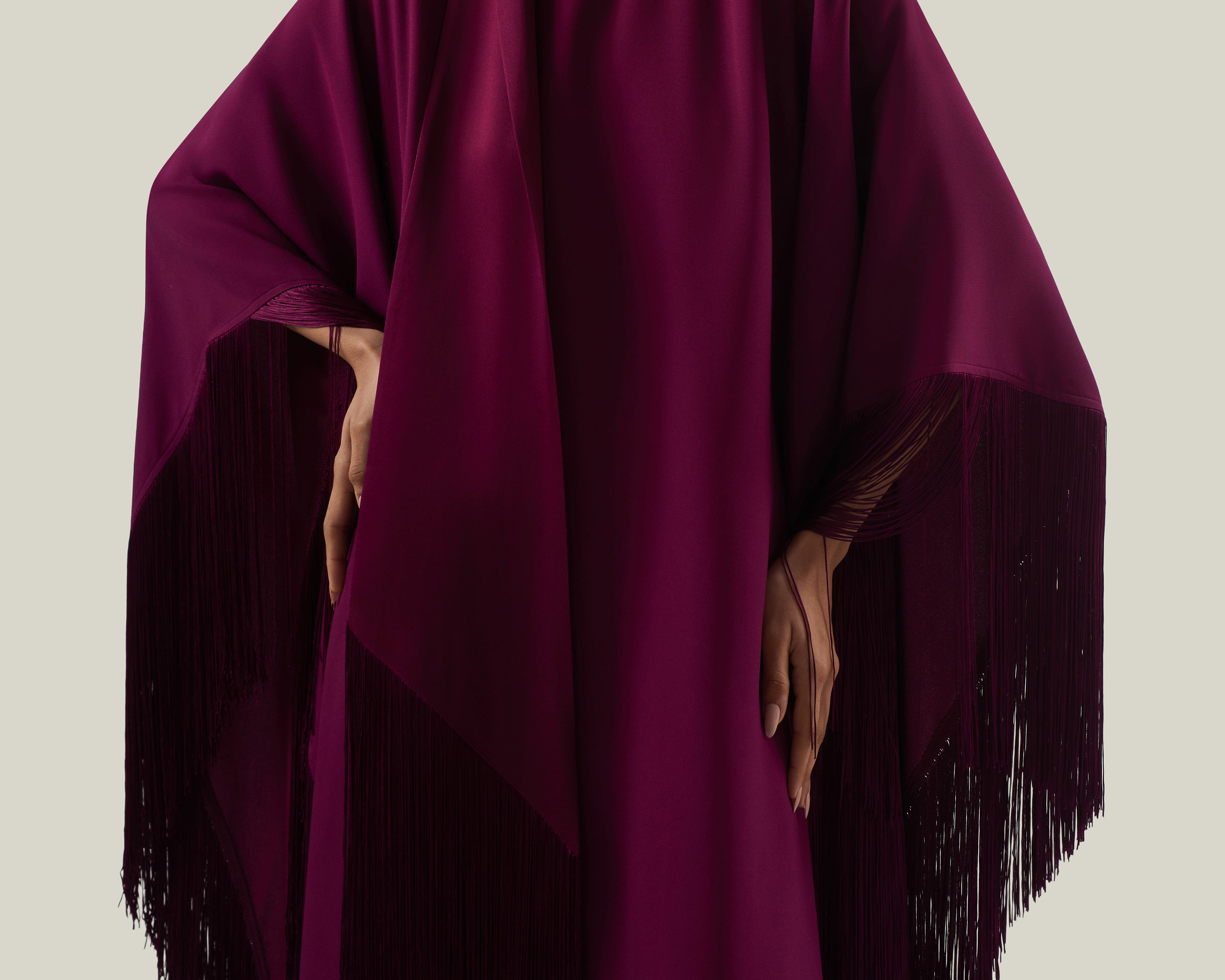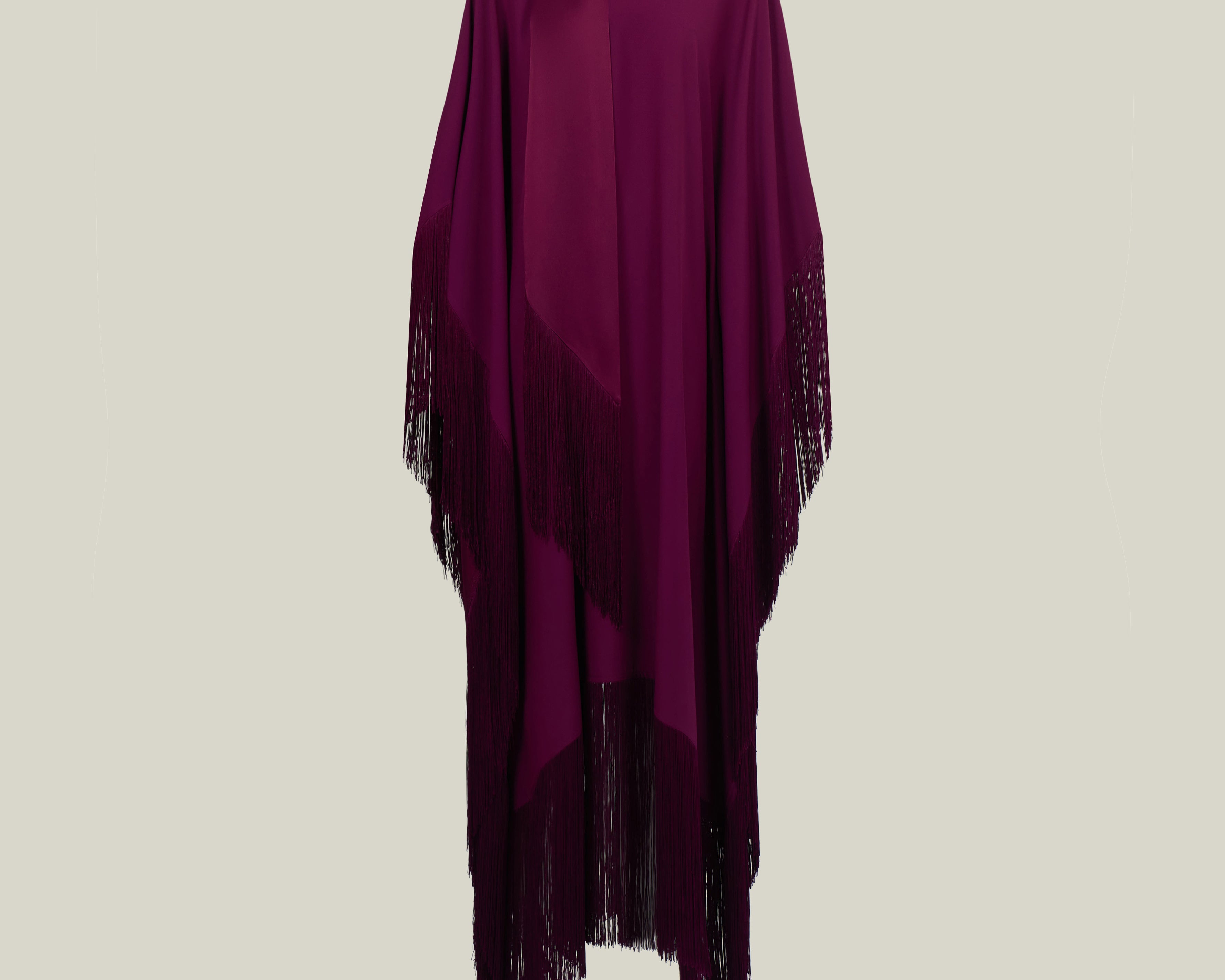 Inspired by the one and only Diana, the Mrs. Ross is a relaxed-fit kaftan made from sleek viscose-blend crepe cady, fully trimmed with tonal soft fringes, and featuring a scarf-style high neckline. A Taller Marmo Classic.