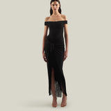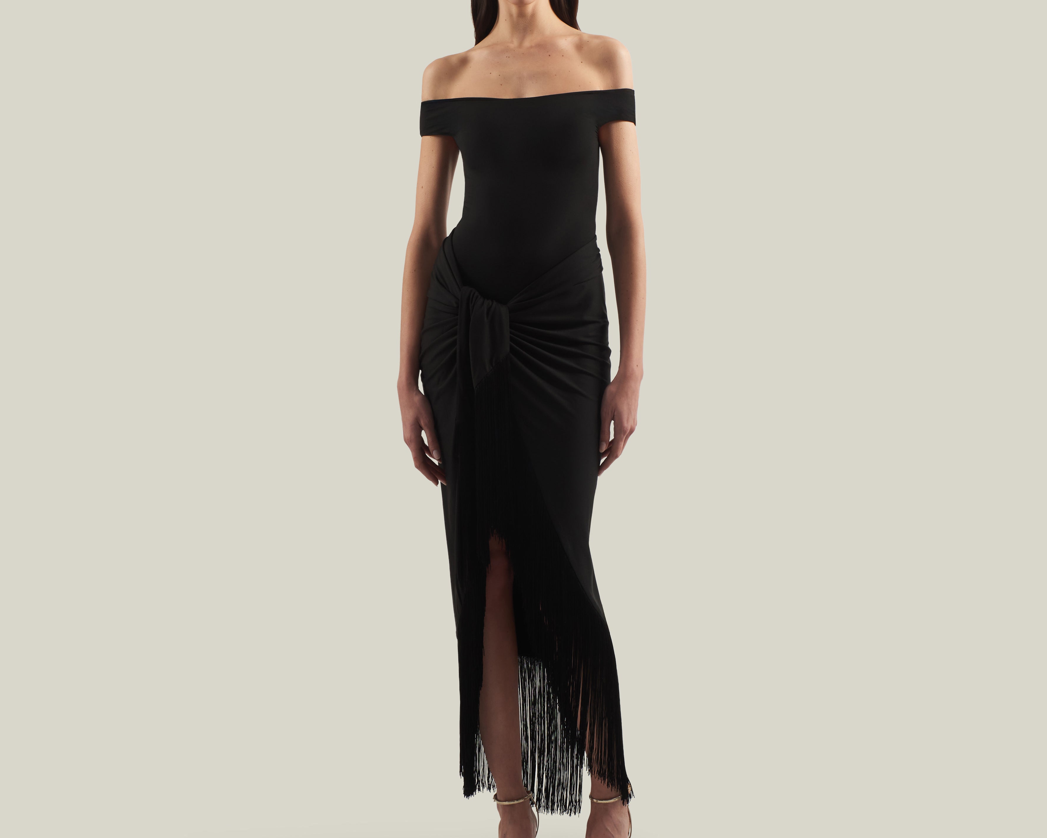 The Romy is an off-shoulder one-piece swimsuit, paired with a detachable long pareo for versatile styling. The pareo, in a matching color, is trimmed with tonal fringes, adding movement and texture, and bringing a playful elegance to your beachside look. Perfect for lounging by the pool, strolling along the shore, or enjoying a luxurious resort escape.
