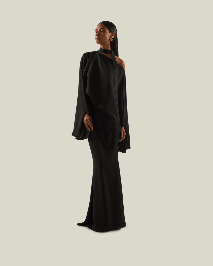 A sleek stretch crepe cady skirt designed in a flattering mermaid silhouette that gently hugs the body before flaring at the hem. This elegant piece combines comfort and drama, perfect for making a graceful statement. Pair it with the Brooks Blouse for a coordinated and fabulous look.