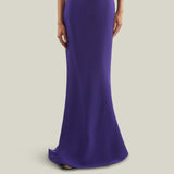 A sleek stretch crepe cady skirt designed in a flattering mermaid silhouette that gently hugs the body before flaring at the hem. This elegant piece combines comfort and drama, perfect for making a graceful statement. Pair it with the Brooks Blouse for a coordinated and fabulous look.