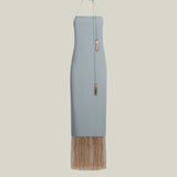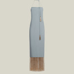 Crepe cady slip dress with metallic fringes