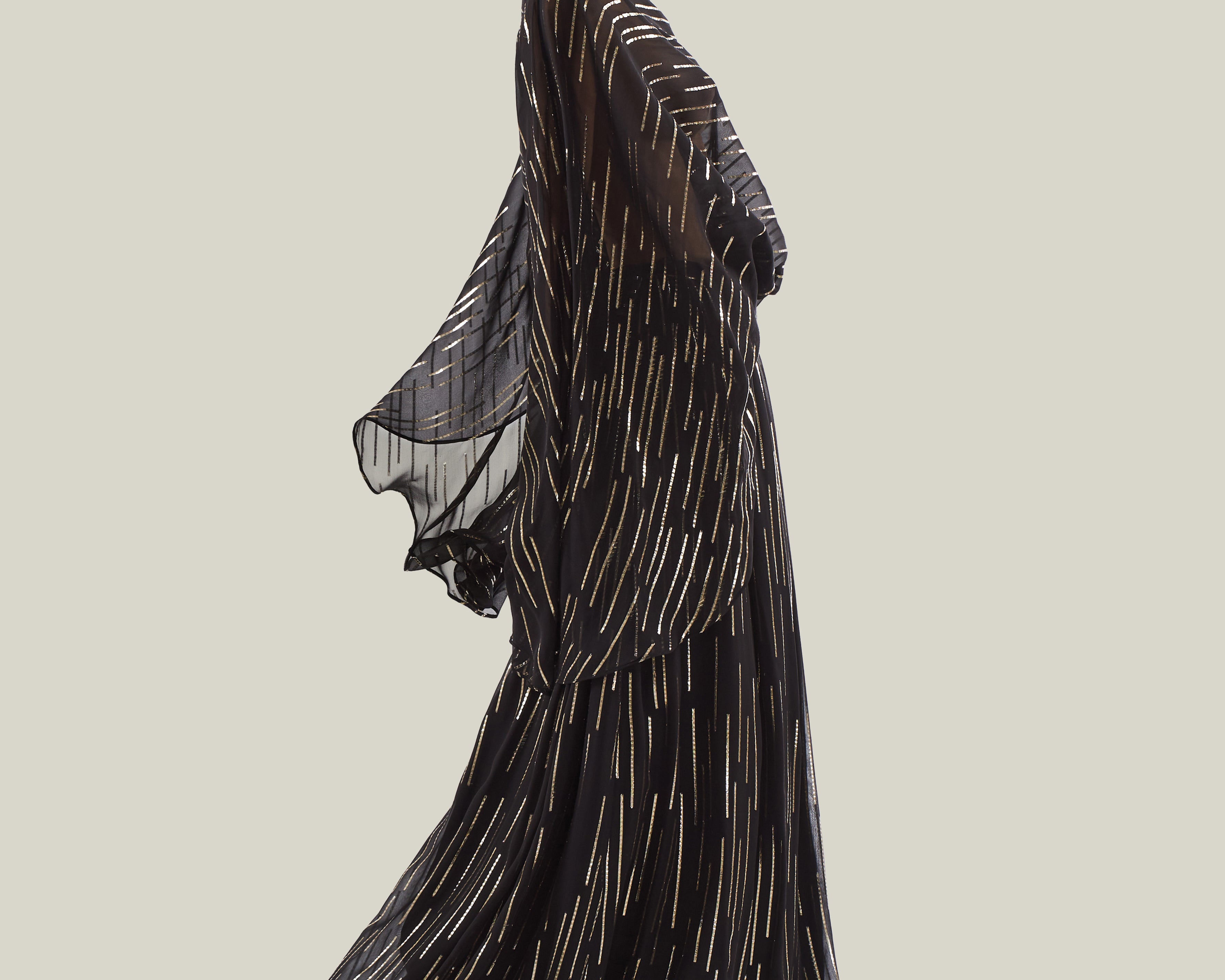 A refined statement of modern glamour, where texture and light become the essence of allure.