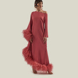 Cold-shoulder feathered long dress