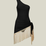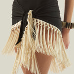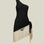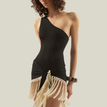 One shoulder swimsuit with dettached fringed pareo