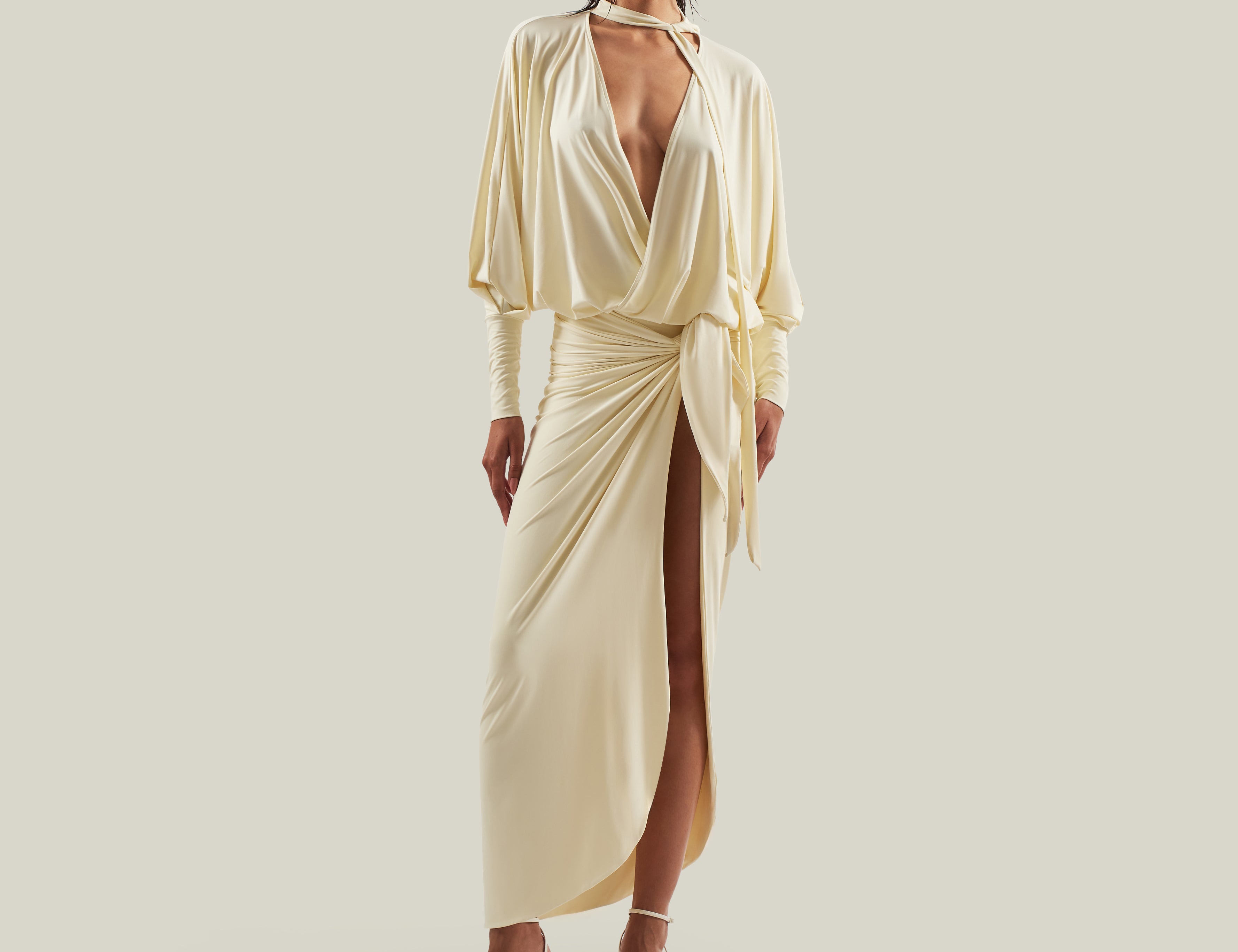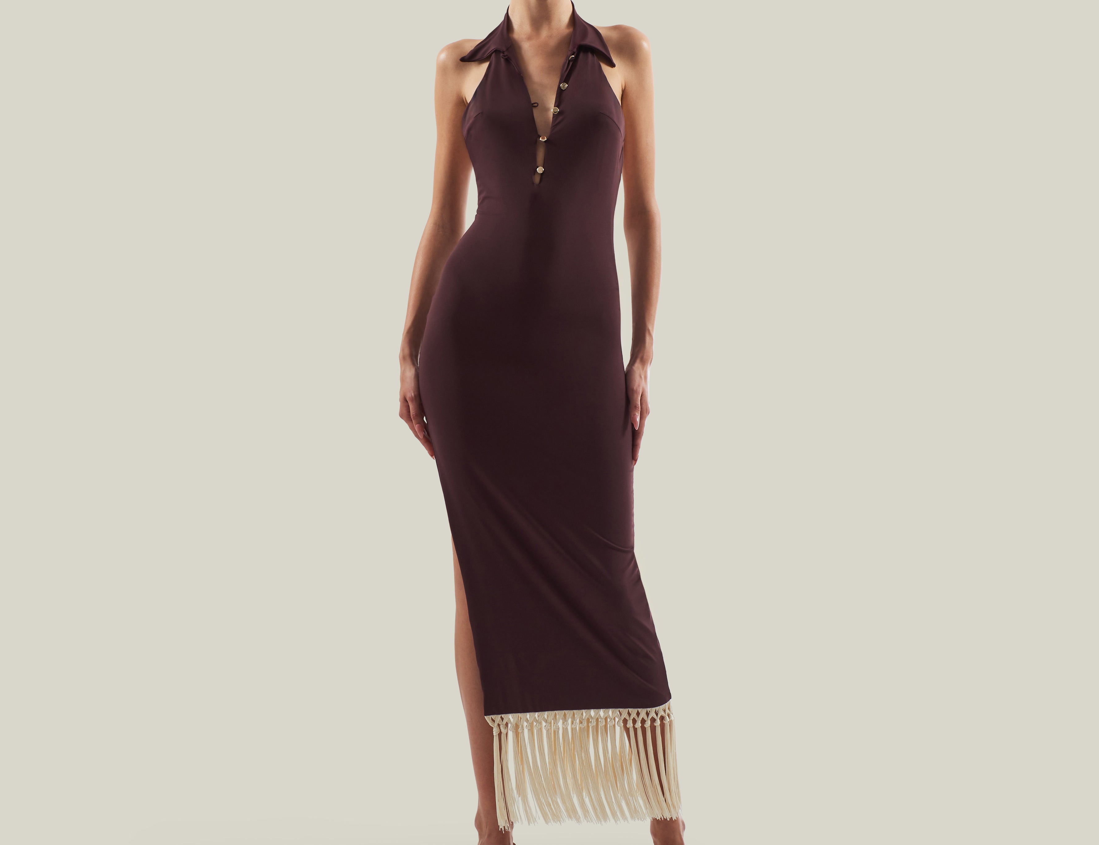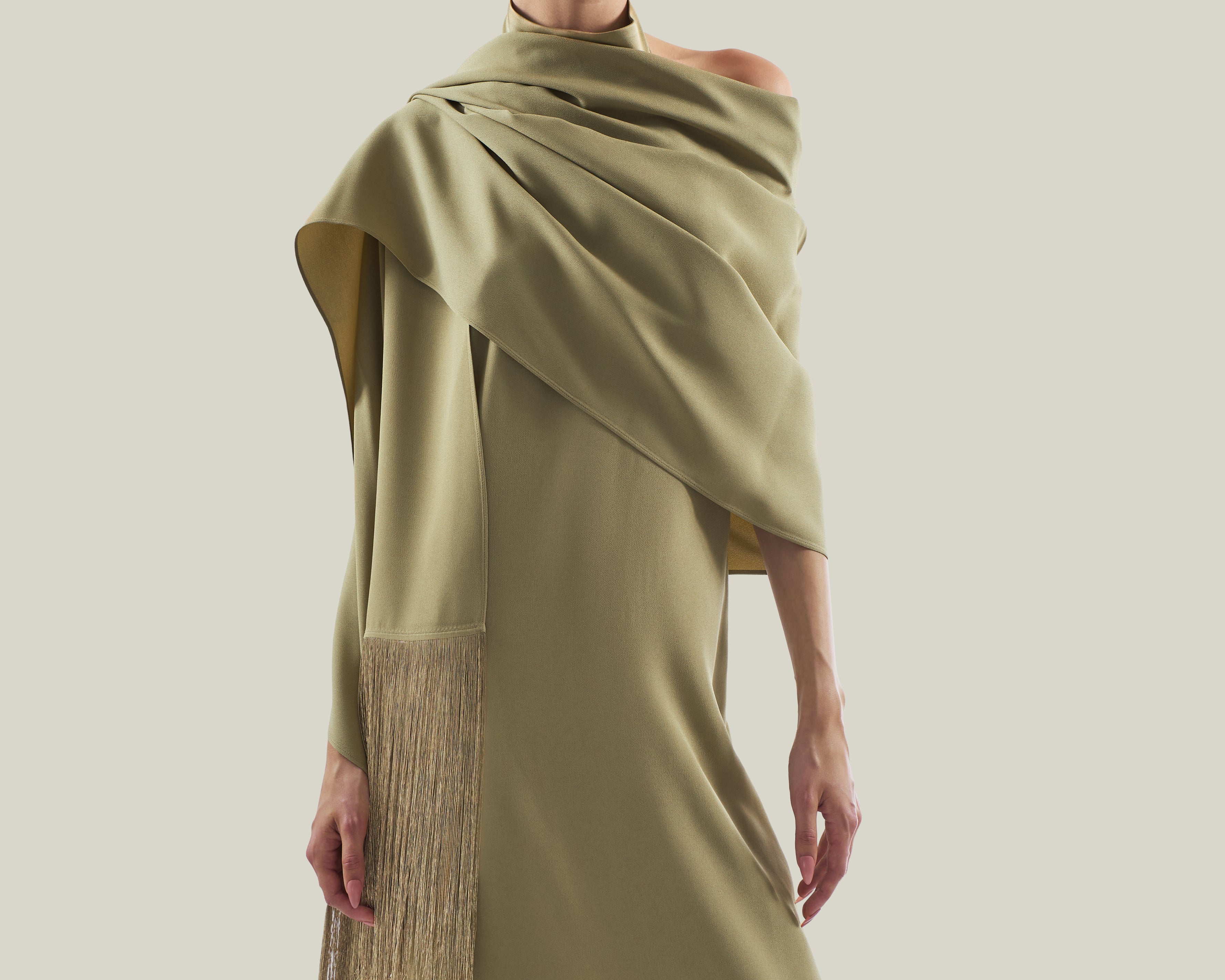 The Zizi Stole is an elegant stole adorned with metallic fringes, designed to complement sleeveless dresses beautifully. Light and versatile, it adds a refined touch to any look.